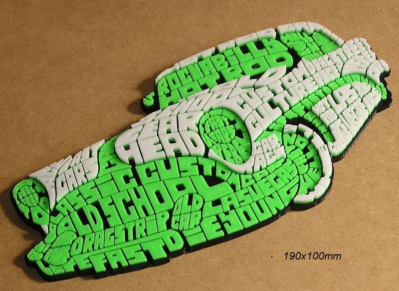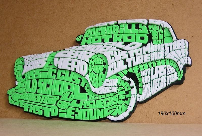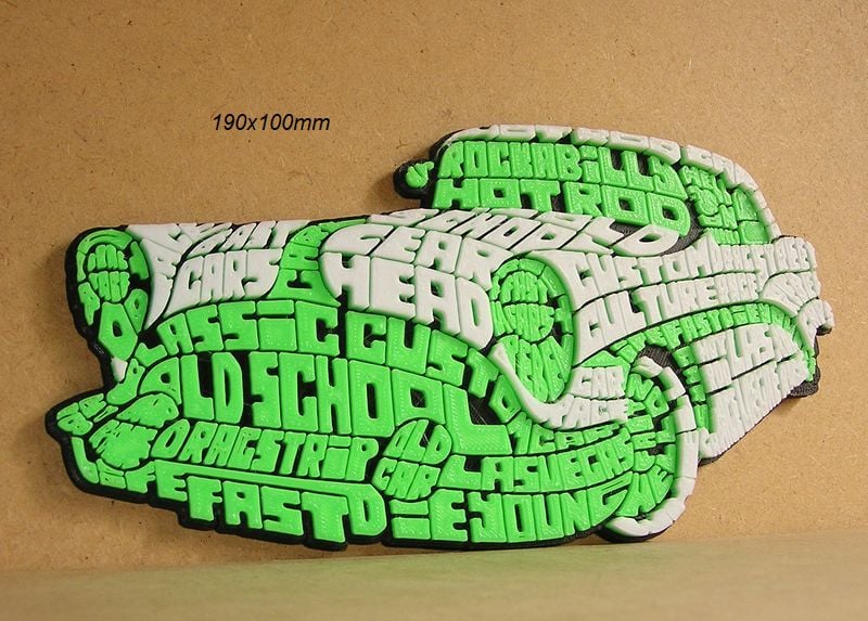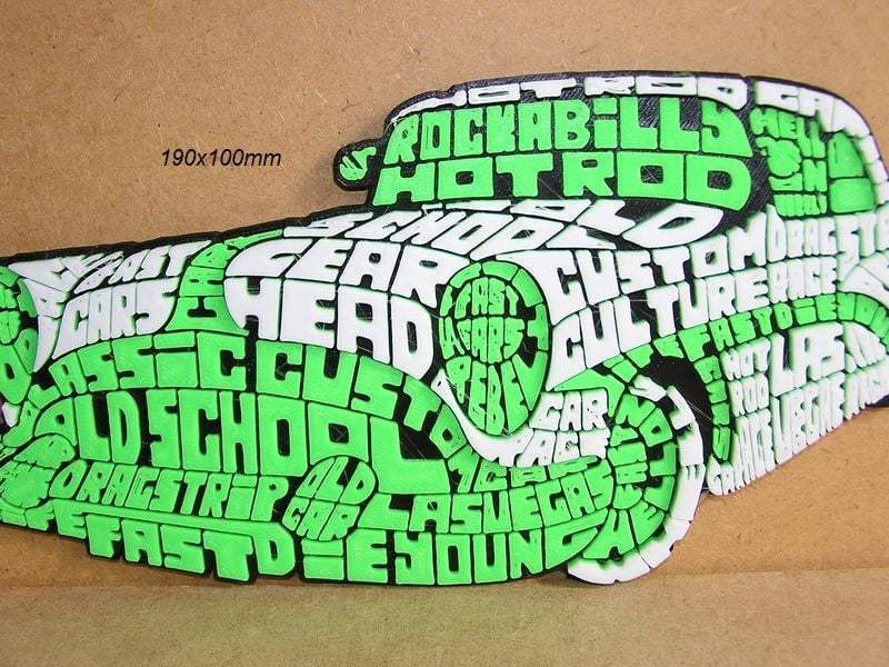 Vintage car with letters surrounding the vehicle, these STL and Gcode files have been created to be printed in various colors with any FDM type printer. The color changes have been made with the Elegoo Neptune 3 Pro printer, but they can be printed on any printer.