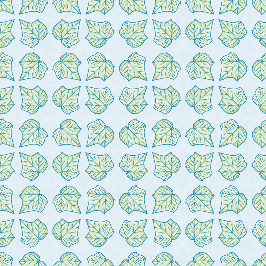 Doodle Ivy foliage vector background pattern. Blue and green leaf seamless illustration.