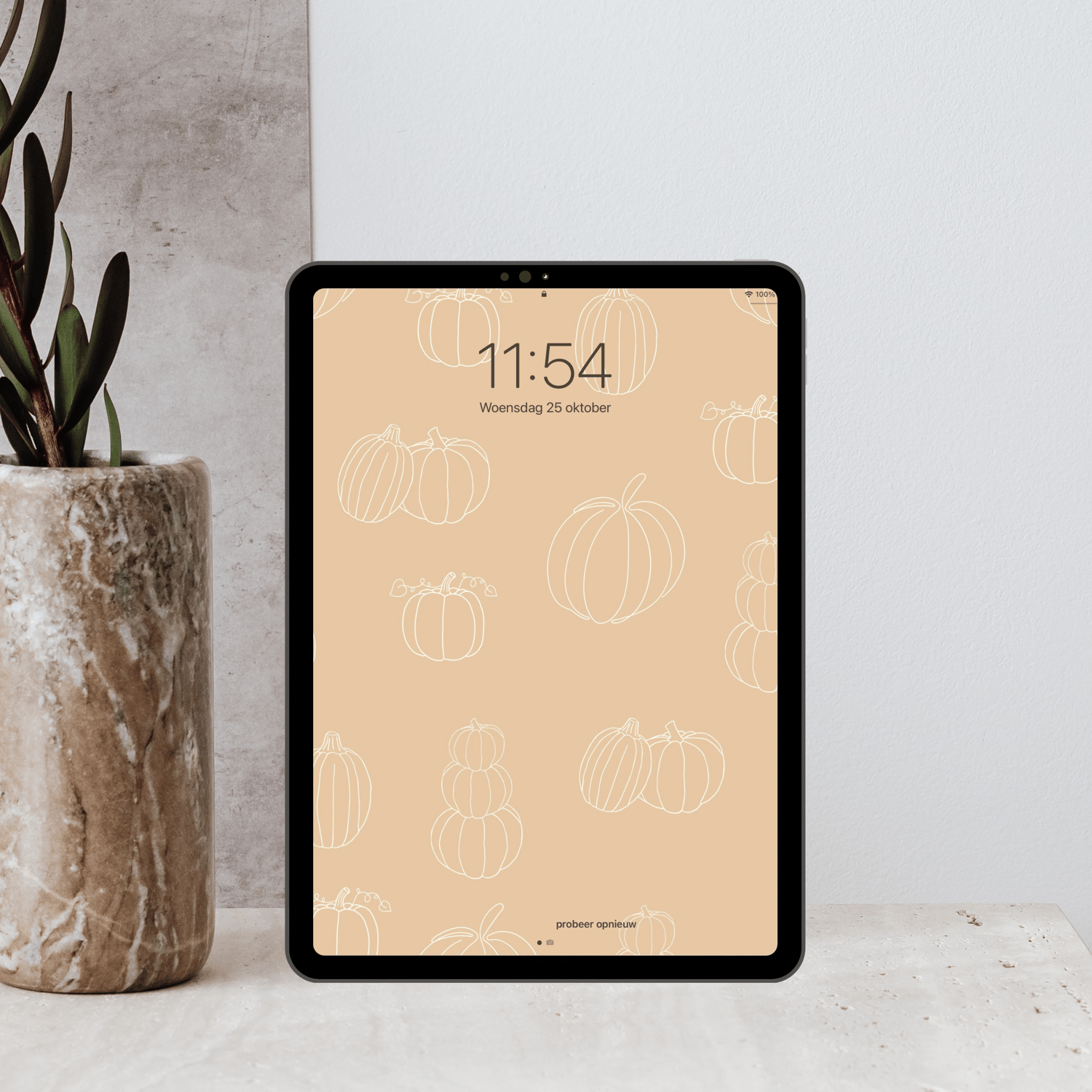 Autumn Pumpkin iPad Wallpaper Beige Aesthetic Tablet Background Fall Wallpaper | Download Directly