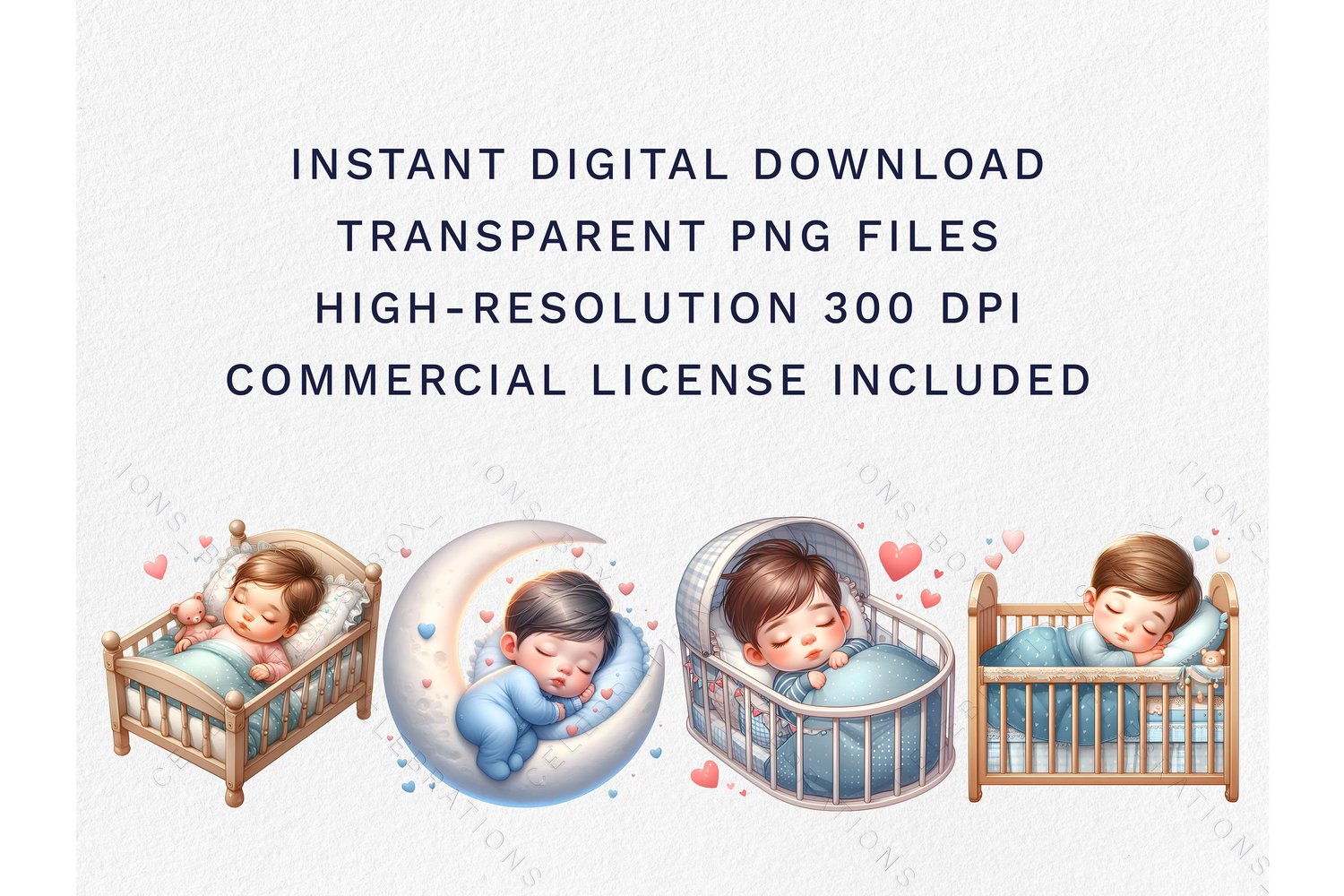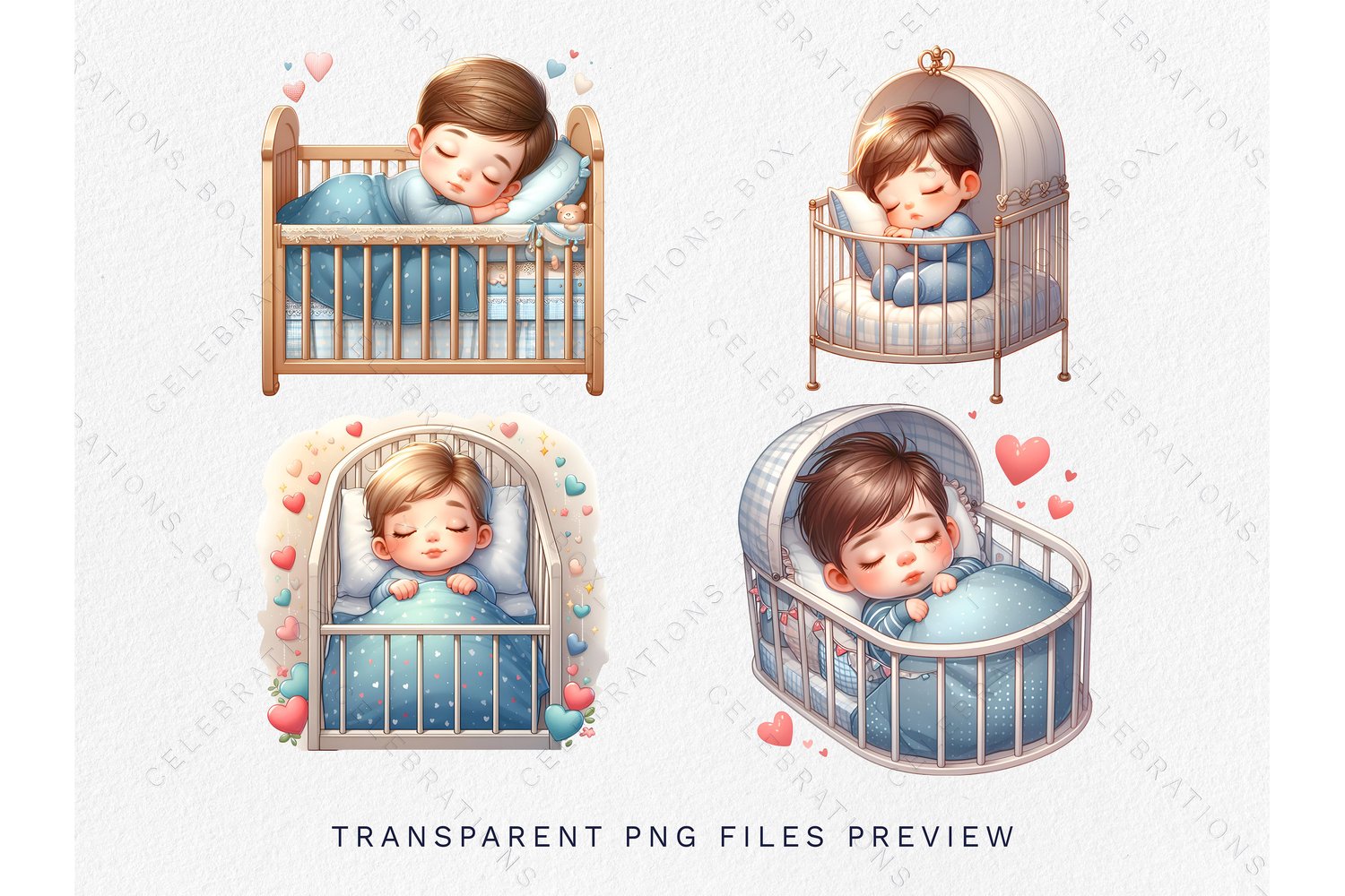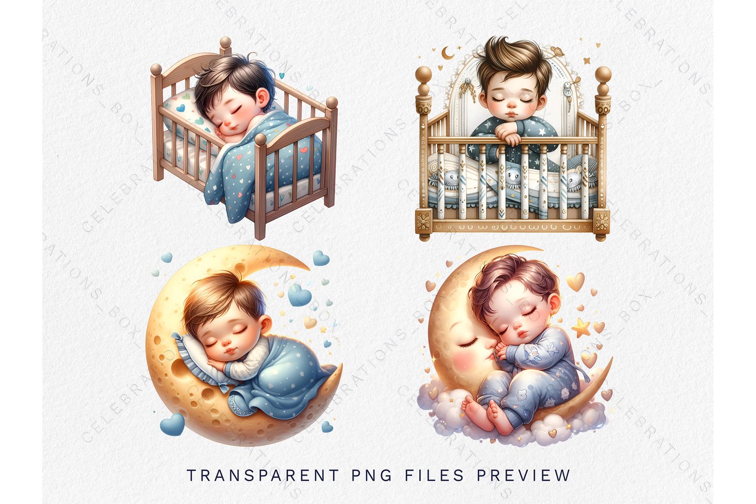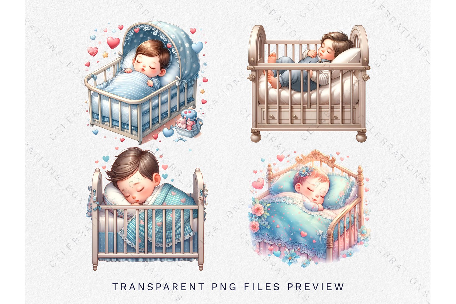 Looking for the perfect way to add a touch of elegance and whimsy to your baby shower decor? Look no further than our watercolor baby sleeping in Cradle clipart set! Our 24 pieces include everything from a sleeping baby boy to a sleeping baby girl, as well as a Sleeping Moon. Whether you're using these pieces for a nursery décor or for your baby shower decorations, they'll be a hit with everyone who sees them!