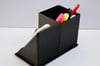 It is then glued on a black box with a leather like surface that serves as a Pen Holder.