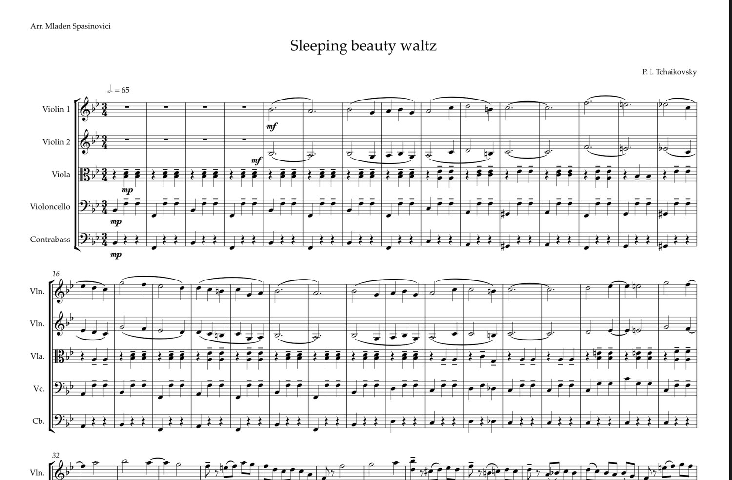 The magical waltz from "Sleeping Beauty" ballet arranged for string quintet.