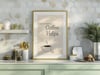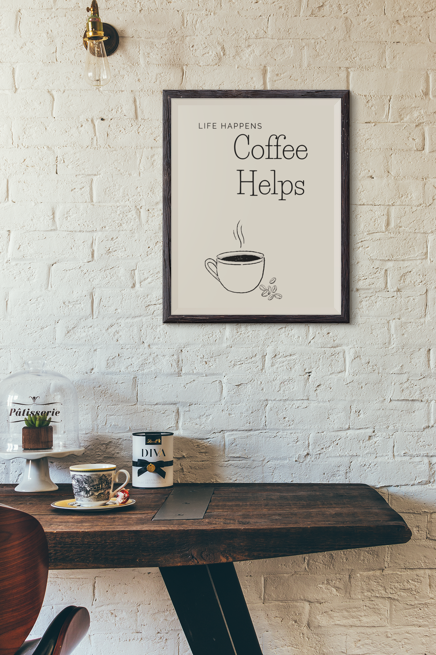 Because life happens — and coffee helps. A cozy kitchen or office print with relatable charm..