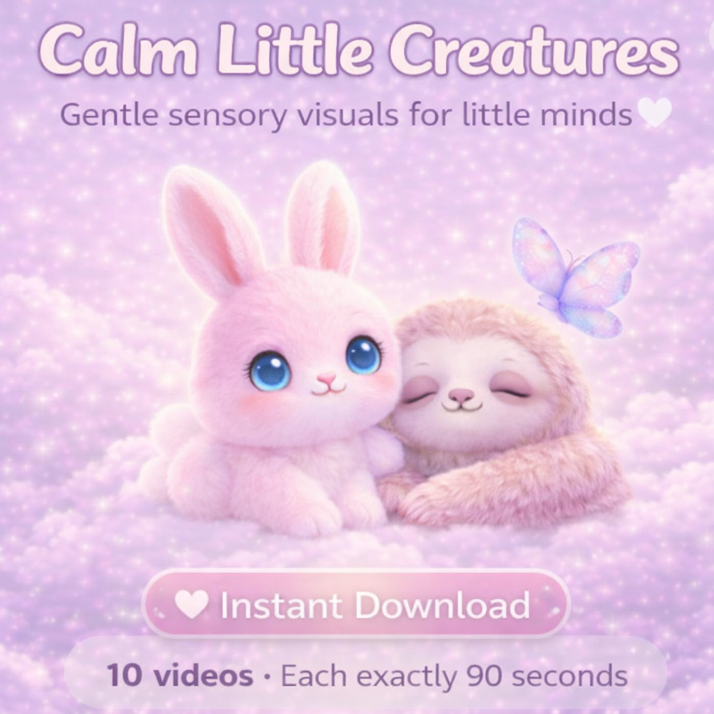 Calm Little Creatures is a soft, sensory-friendly video bundle created to help children feel safe, relaxed, and comforted through slow visuals, peaceful motion, and warm, soothing scenes.