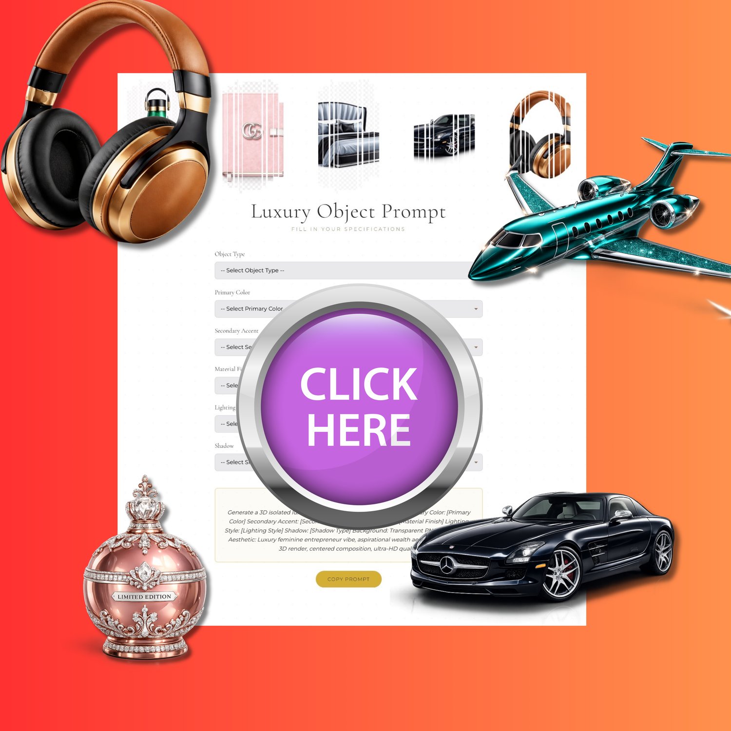The Luxury Object Prompt Generator is your plug-and-play system for creating ultra-HD, high-gloss 3D luxury product visuals — without hiring a designer, learning complex software, or guessing what to type.