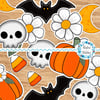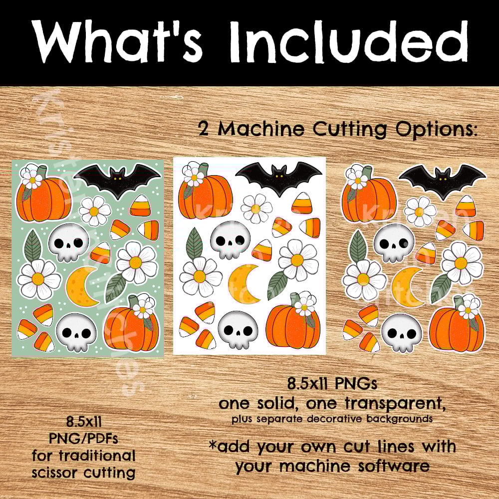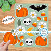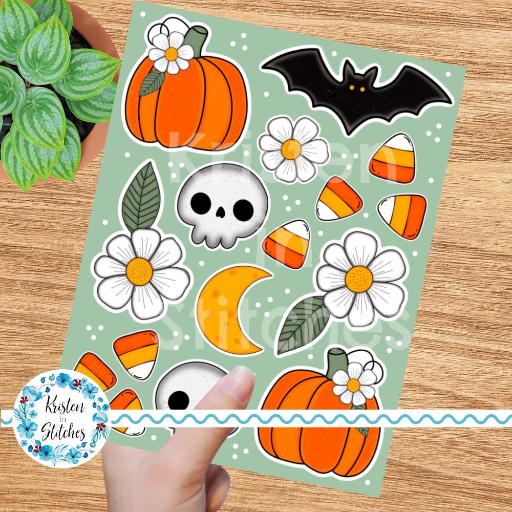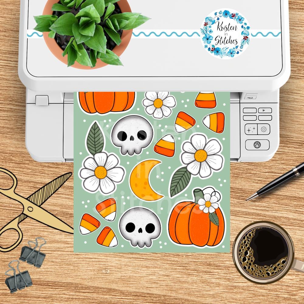 Halloween Haunts Printable Sticker Sheets, PDF PNG, DIY Print & Cut Paper Crafts, Fall Thanksgiving Skulls and Pumpkins