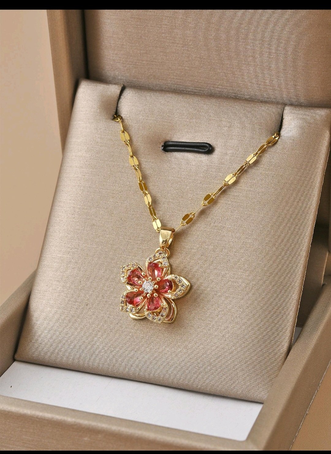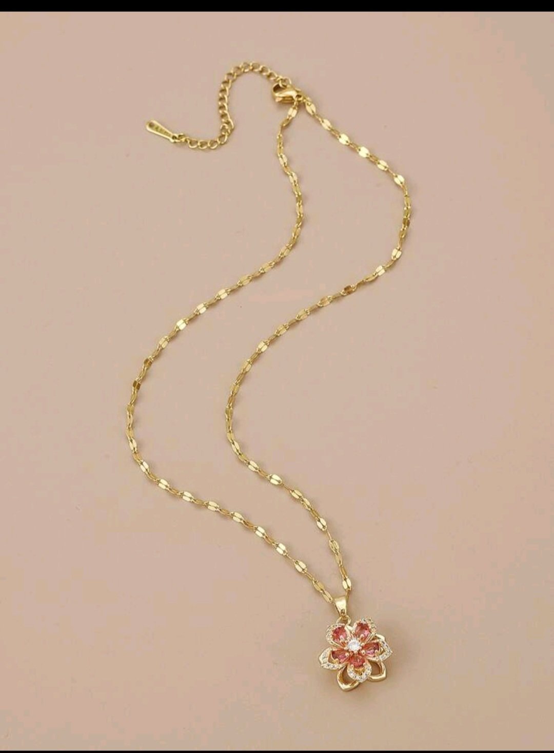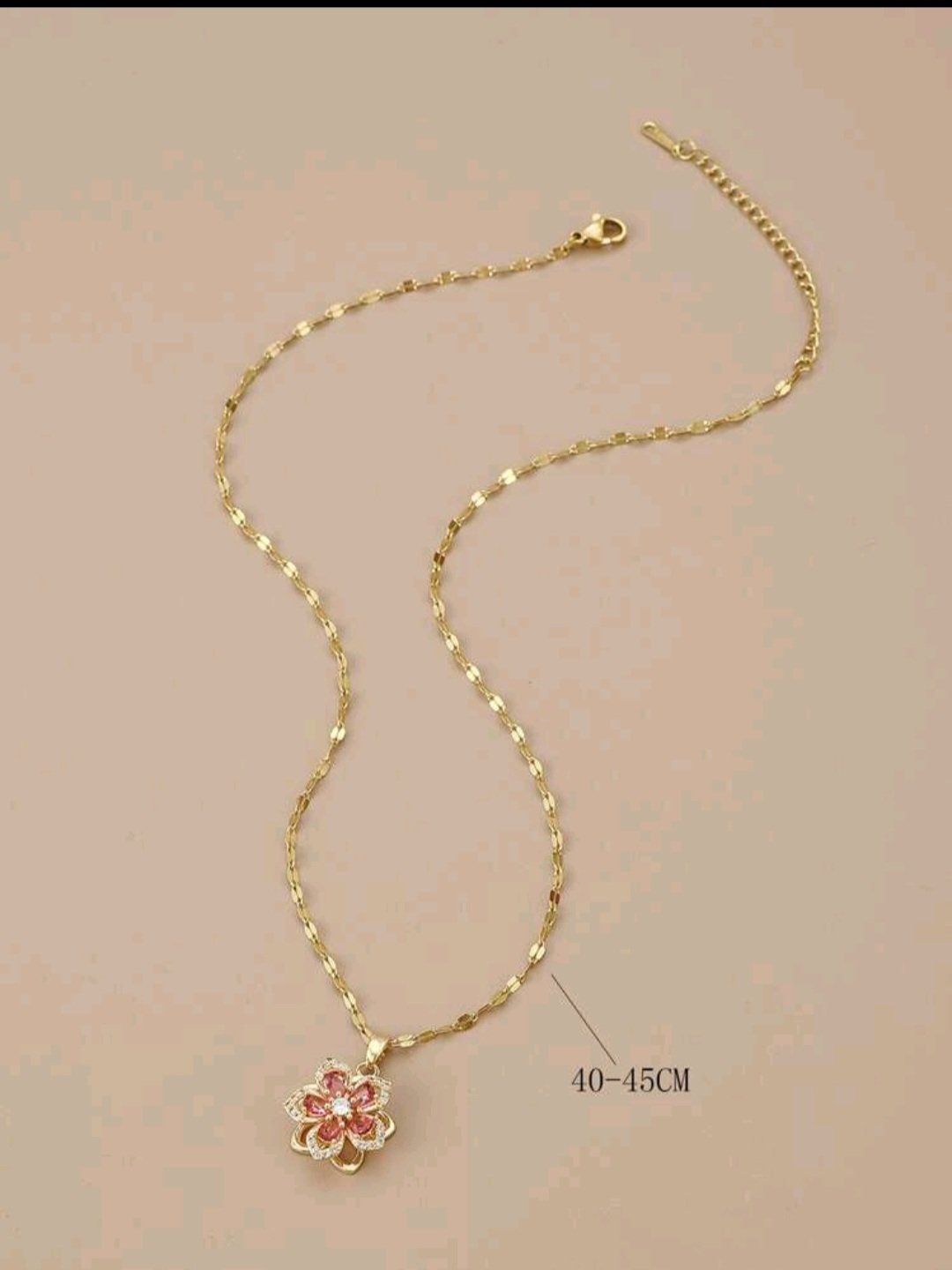 1pc Stainless Steel Rotating Five Petals Flower Shaped Pendant Necklace For Women