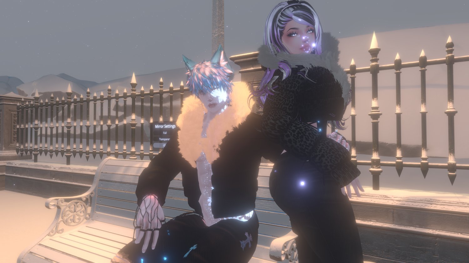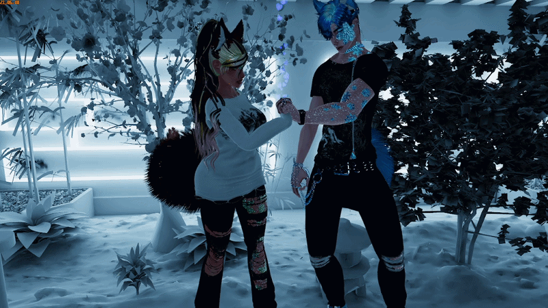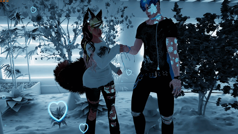 Frost and Wynter are a pair made in perfect harmony, with many similarities but with slight differences but that is what makes them so good together. They are adapted with movement of a snow leopard and winter wolf. With many customizations along with several winter items, flows and even has a contact for when you hold hands with your significant other hearts appear.