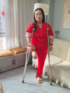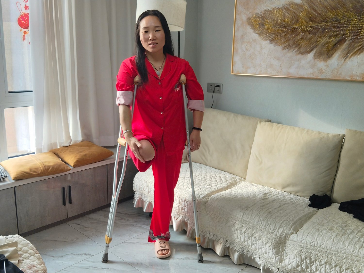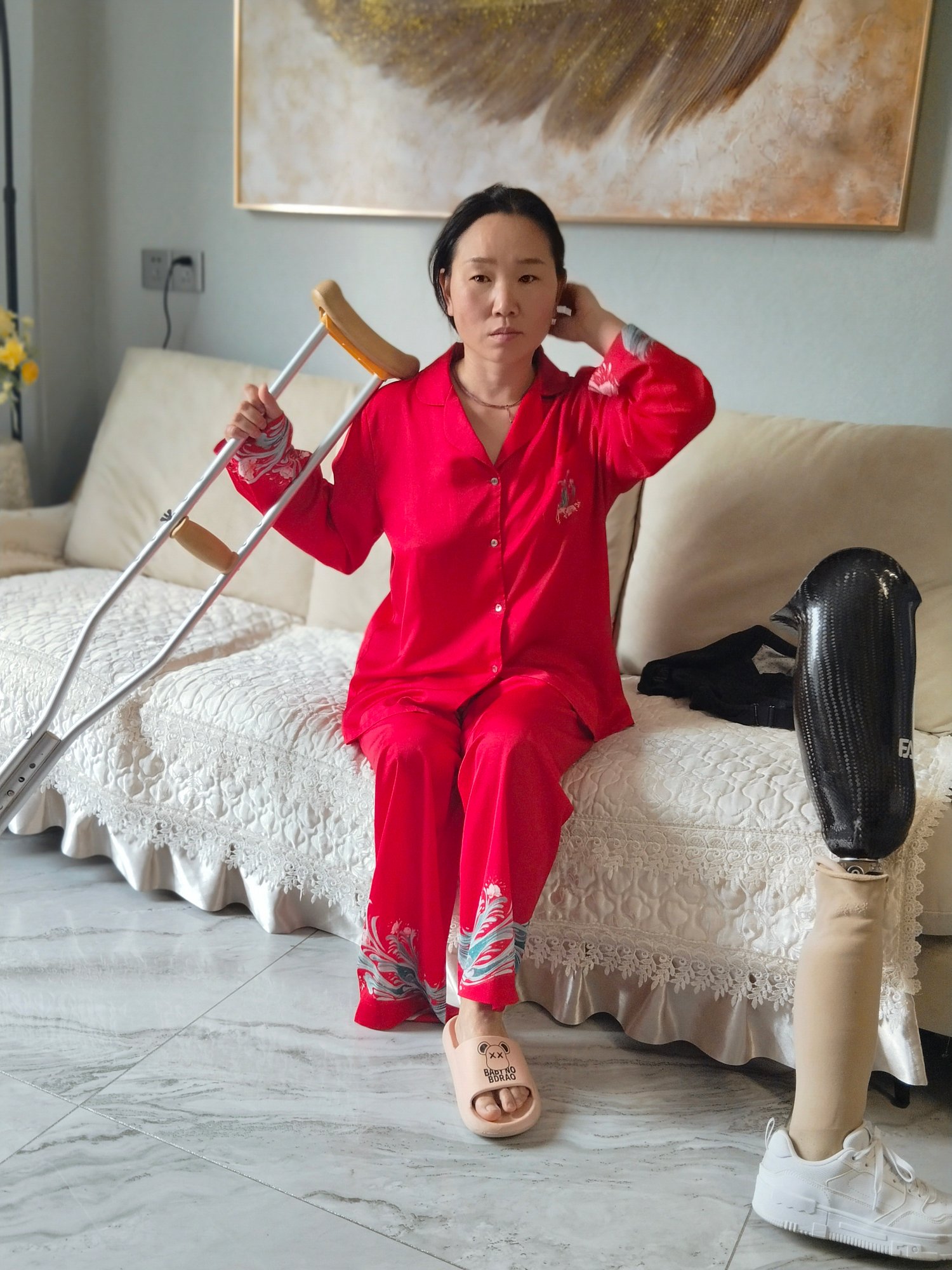 Gigi usually spend the first hour in she favorite red pajamas, moving around with she crutches while her get ready. Her carbon fiber prosthetic is standing by, but she like to take her time with my grooming before "lapping up" for the day. It’s all about balance, self-care, and getting into the right headspace!