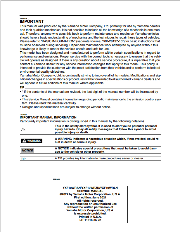 2022 Yamaha Wolverine RMAX4 YXF10WRAN YXF10WRZN YXF10WRLN Service Manual Part No. LIT-11616-35-22