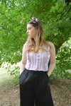 Length of finished top buttoned up: 39cm across and 21 cm down (15.35” x 8.26”) Strap length (when attached): 16cm / 6.29” Fit size: XS/S.