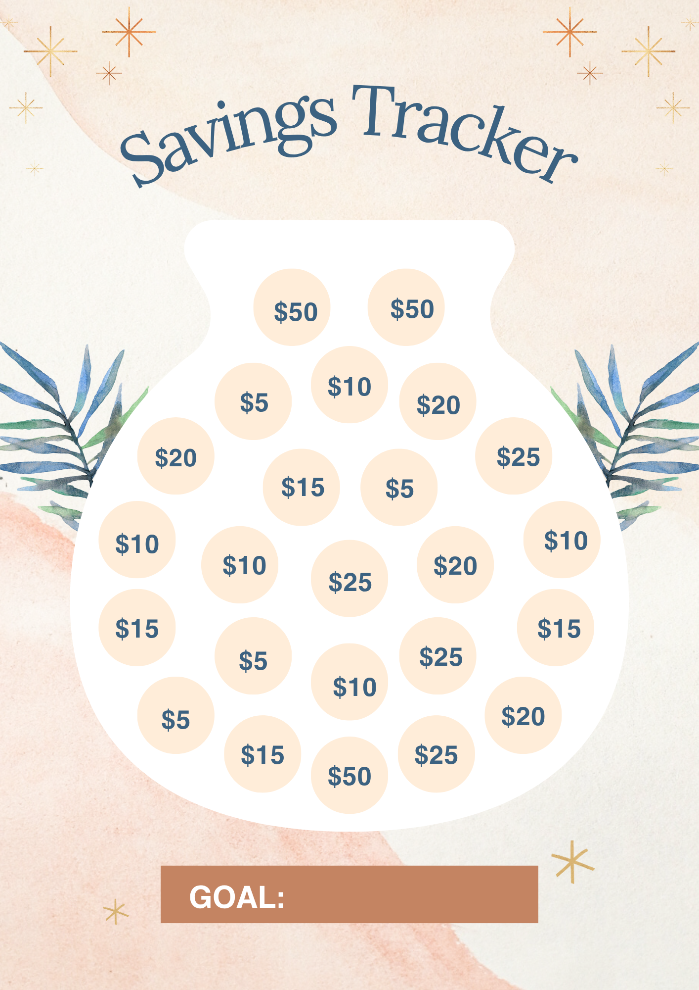 - Saving Money Tracker: Keep your savings goals on track, so you can plan for big purchases, vacations, or an emergency fund.