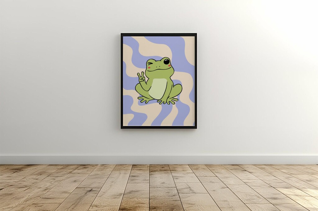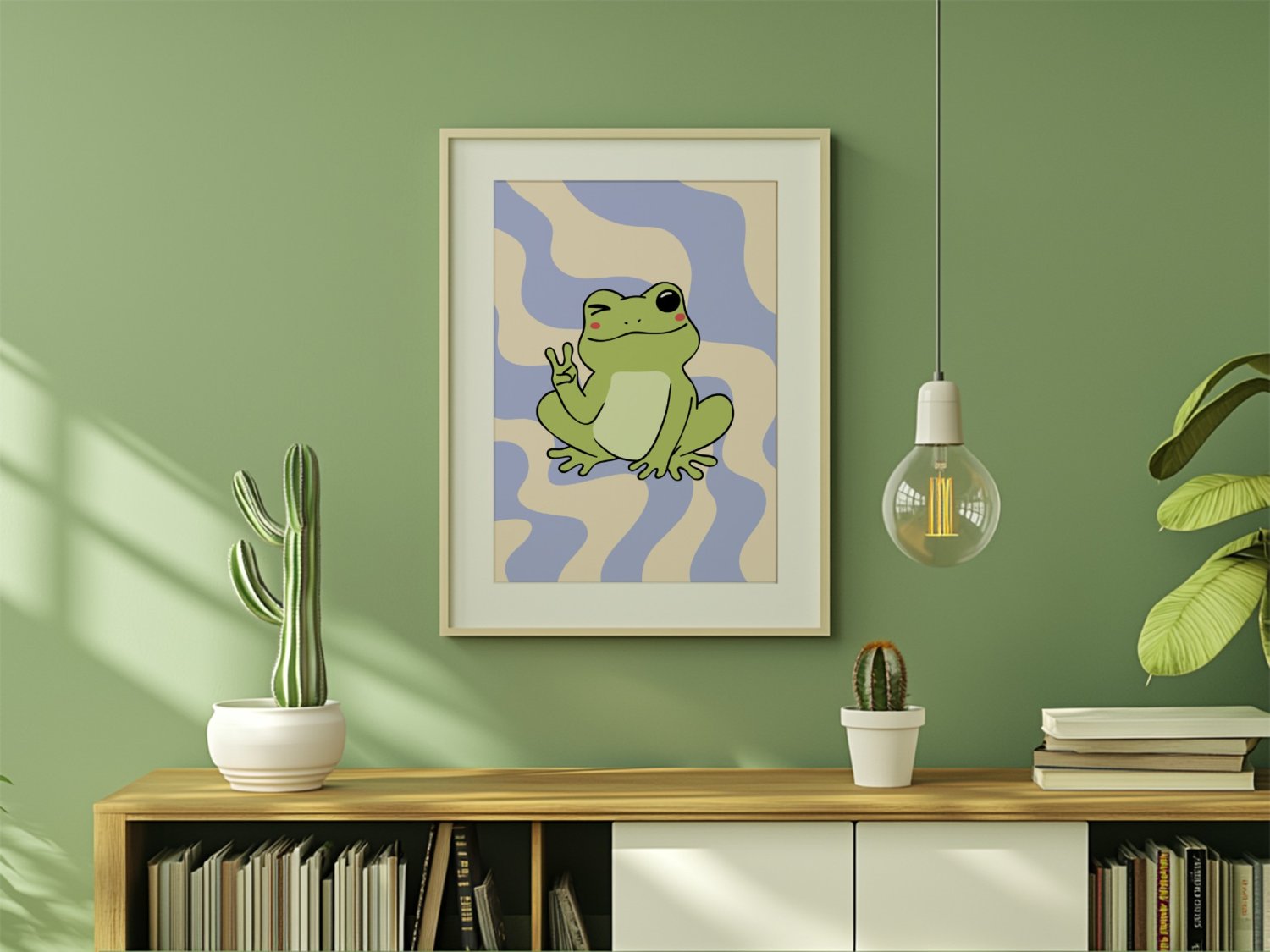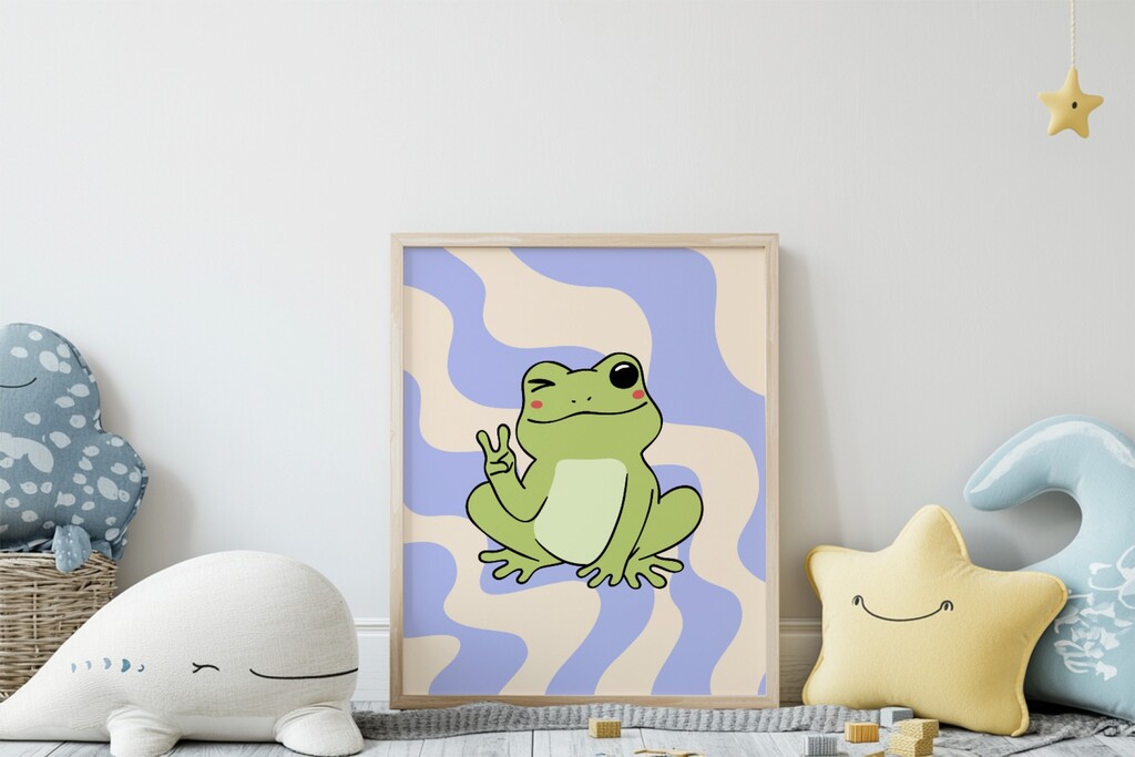 This quirky frog brings the fun! “Chill Frog” vibes out with sunglasses. Playful and bold great for colorful decor or fun little corners of a room..
