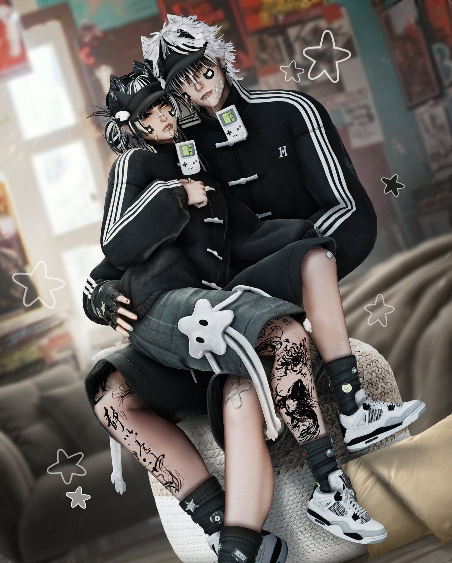 ▹ ACCESSORIES [ Belt, Choker, Dufflebag, Eyepatch, 2 pairs of Glasses, Hair pins, Headphones, Leg Star, Nails, Smiley Chain, Gboy, Tie, Bandaids, Piercings, Necklaces, Rings & bracelets, Weapons, Soda Can ]