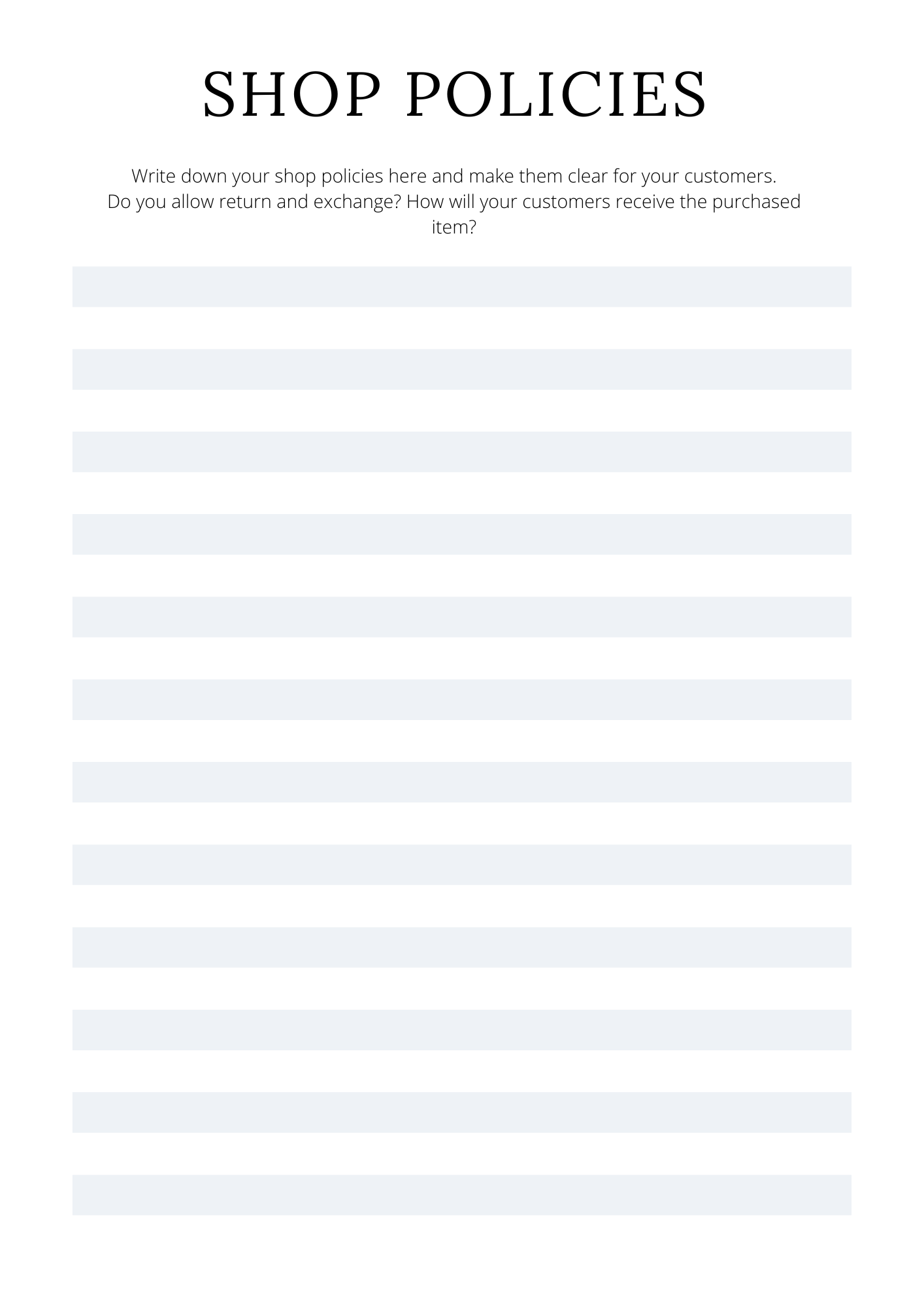 - Operational Blueprint: Draft clear shop policies for returns and shipping so your customers feel safe buying from you.
