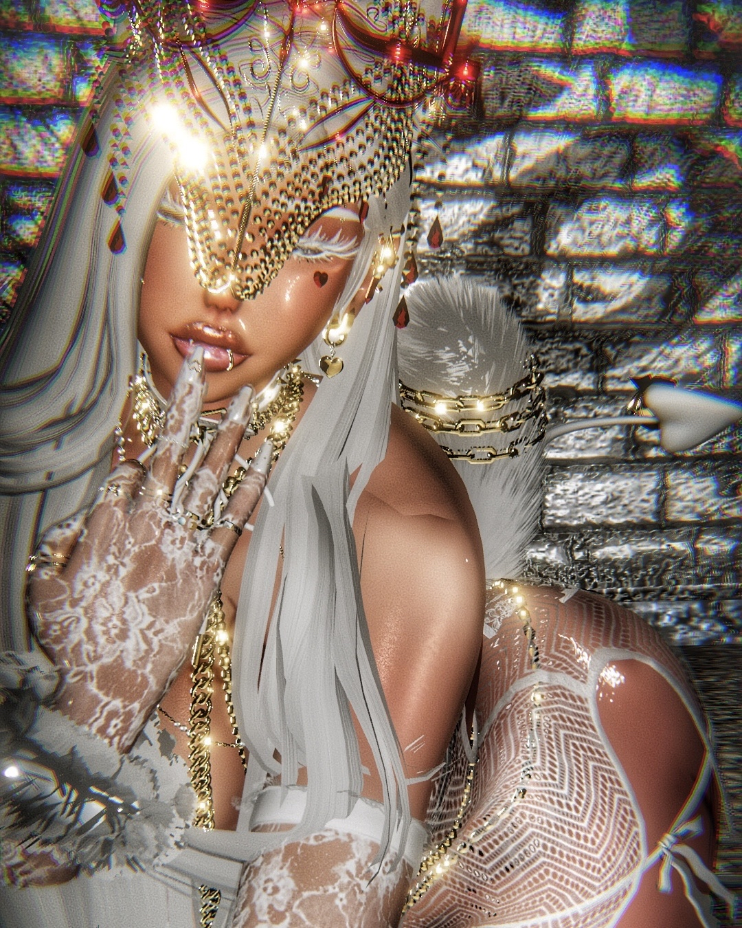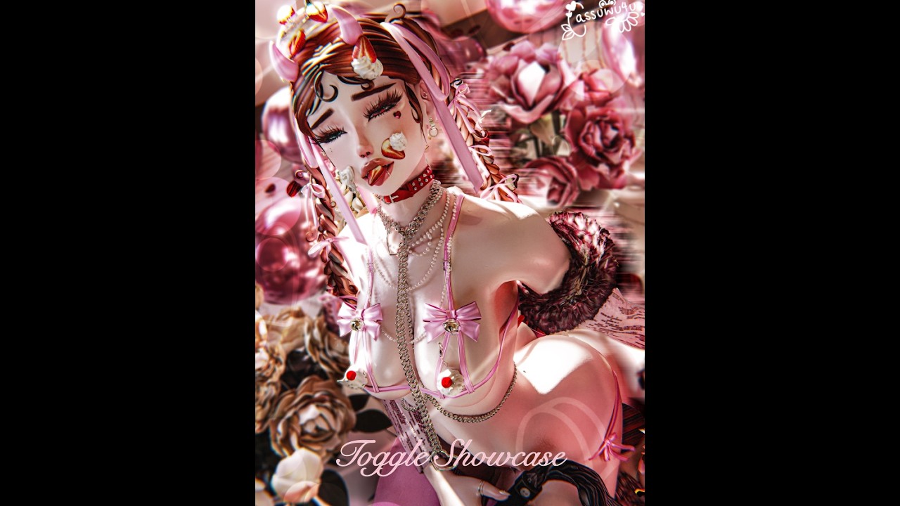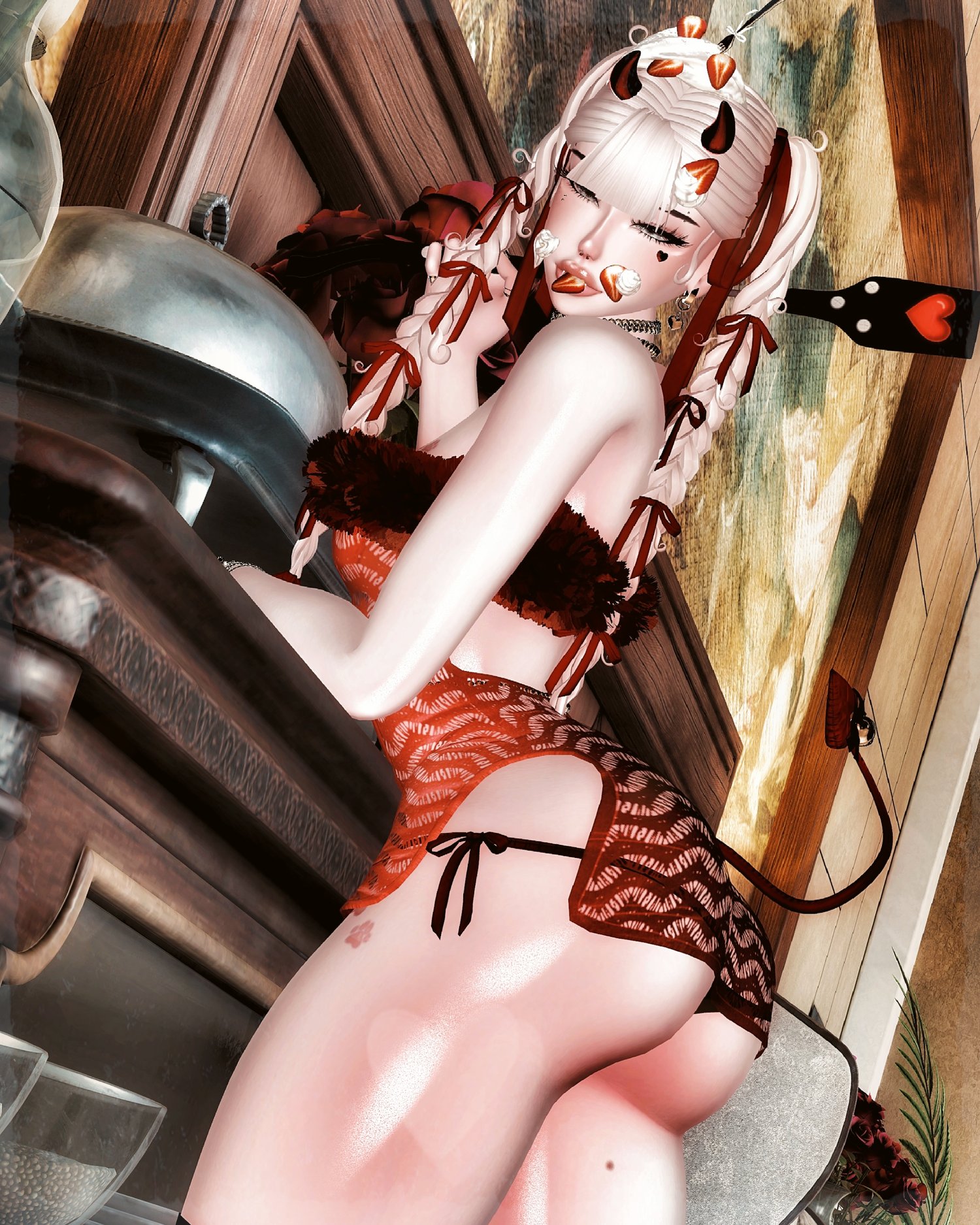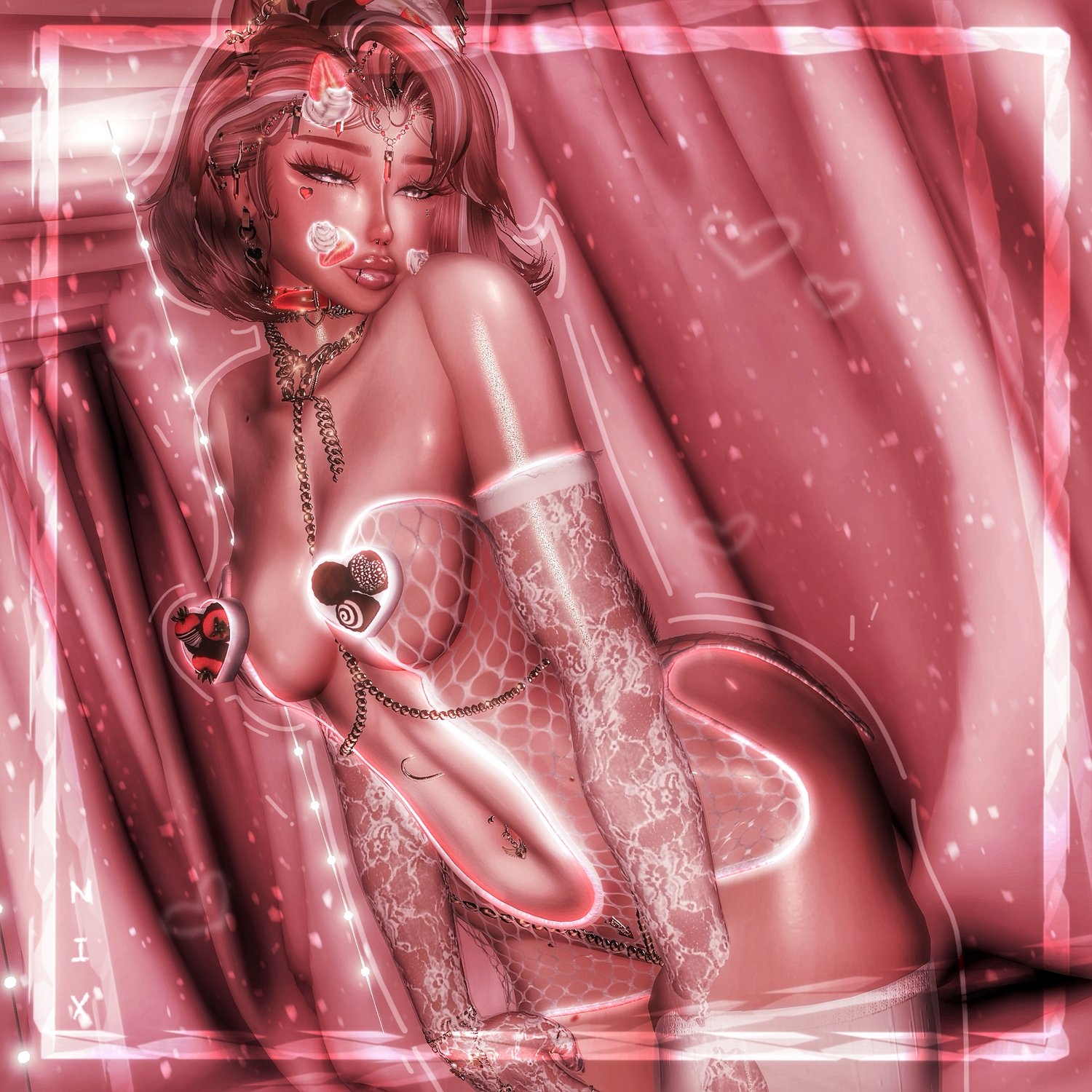♡ Accessories: Pearl head acc (marechan), ear acc (yuri), heaven arrow (electriccherry), garter belt (xero3D), pearl necklace (suki), jewels head (suki), tiara (altair), chest chain (weeeby), fluffy sleeves / ankles / wrists (weeeby), chandelier mask (starkotic), heart antennas (rova), heart leash (rebruising), septum (skittie), hand chain (suki), choco boxes (milkymutt), corset, collar, leash, forks, body desserts (milkymutt)