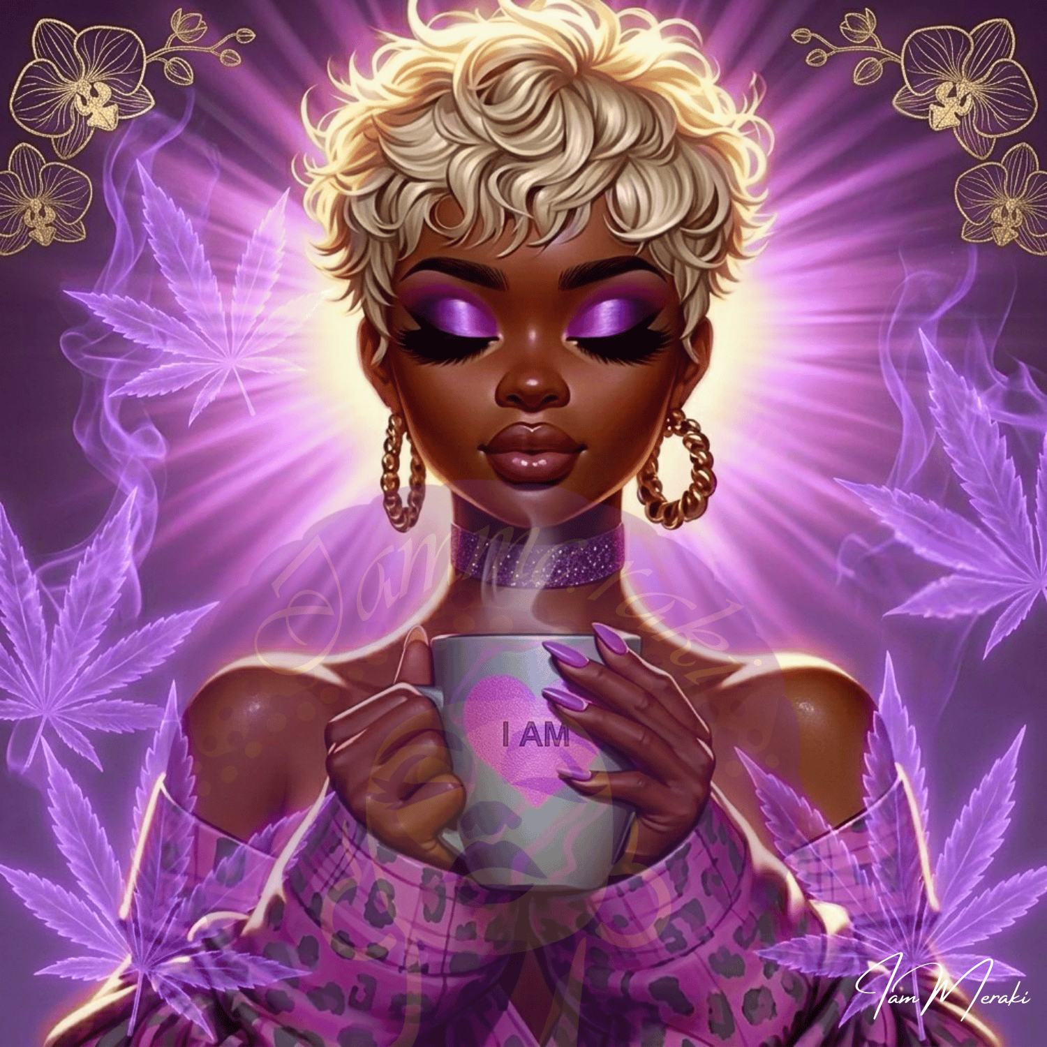 You’re not just downloading art,you’re unlocking an elegant vibe. Our digital Melanated 420 Divas artwork is dripping in boldness, beauty, and brilliance, made to reflect the richness of our skin, the power of our presence, and the softness of our glow.
