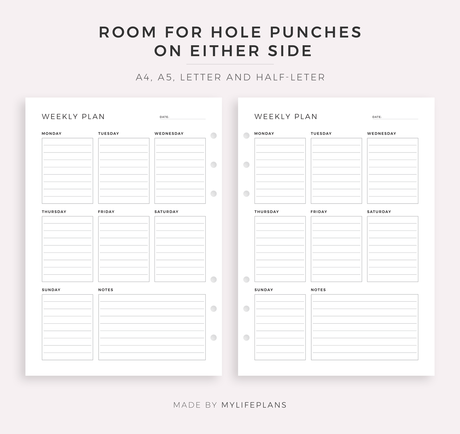 • Includes A4, Letter, and Fillable(A4) planners