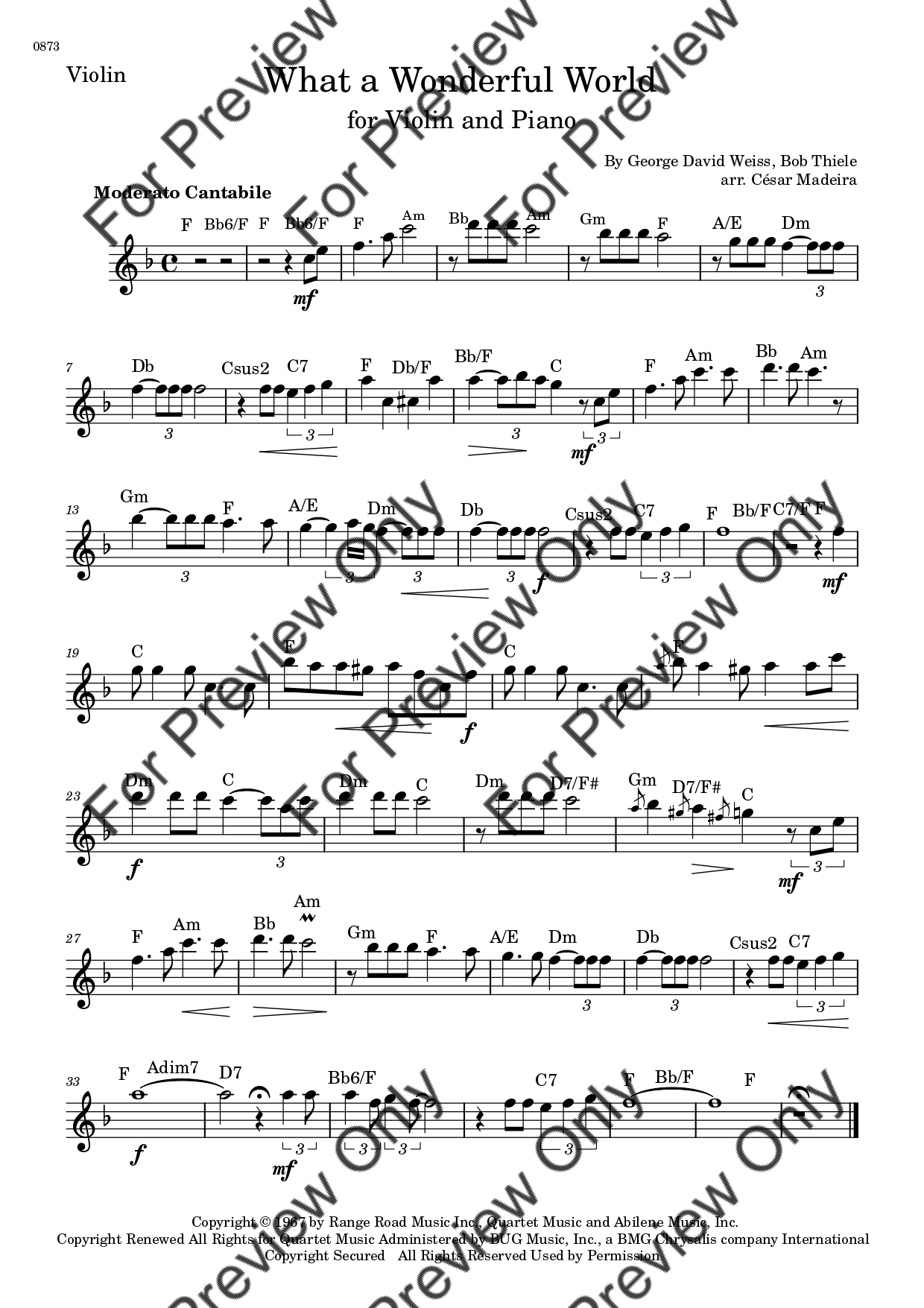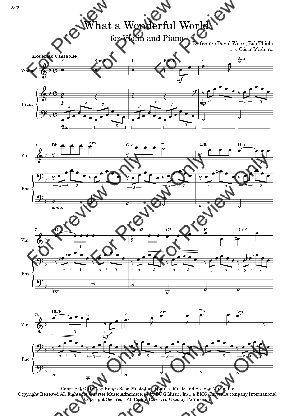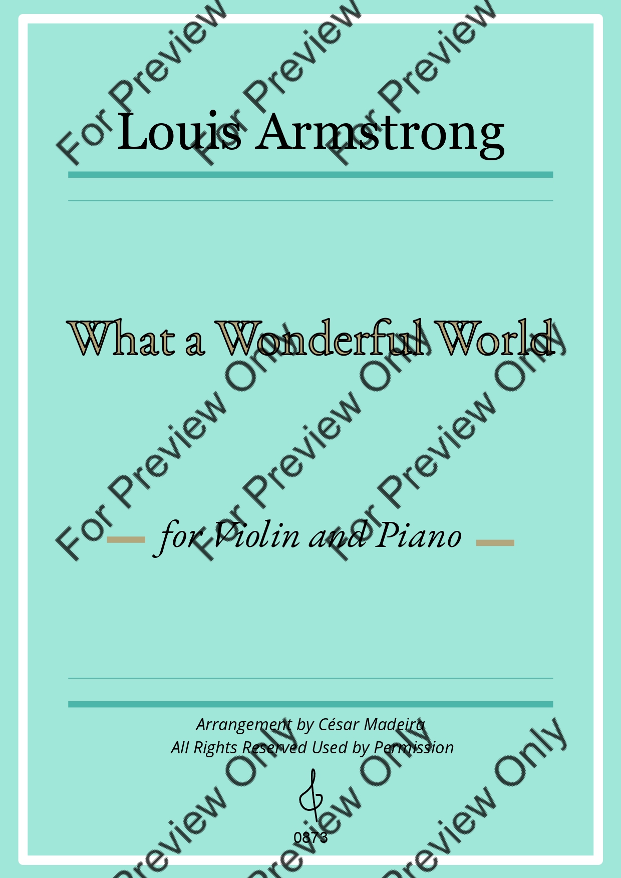 What A Wonderful World by Louis Armstrong. Arrangement for Violin and Piano. With Full Score and Individual Parts. Have fun!