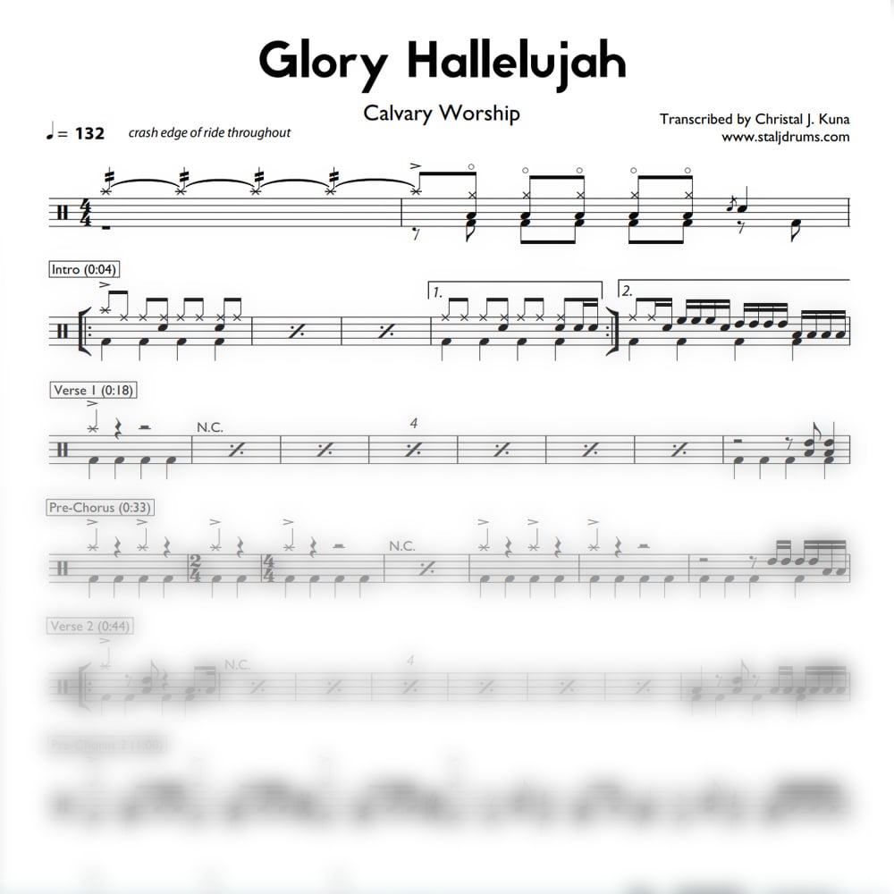 Calvary Worship - Glory Hallelujah (drum score)