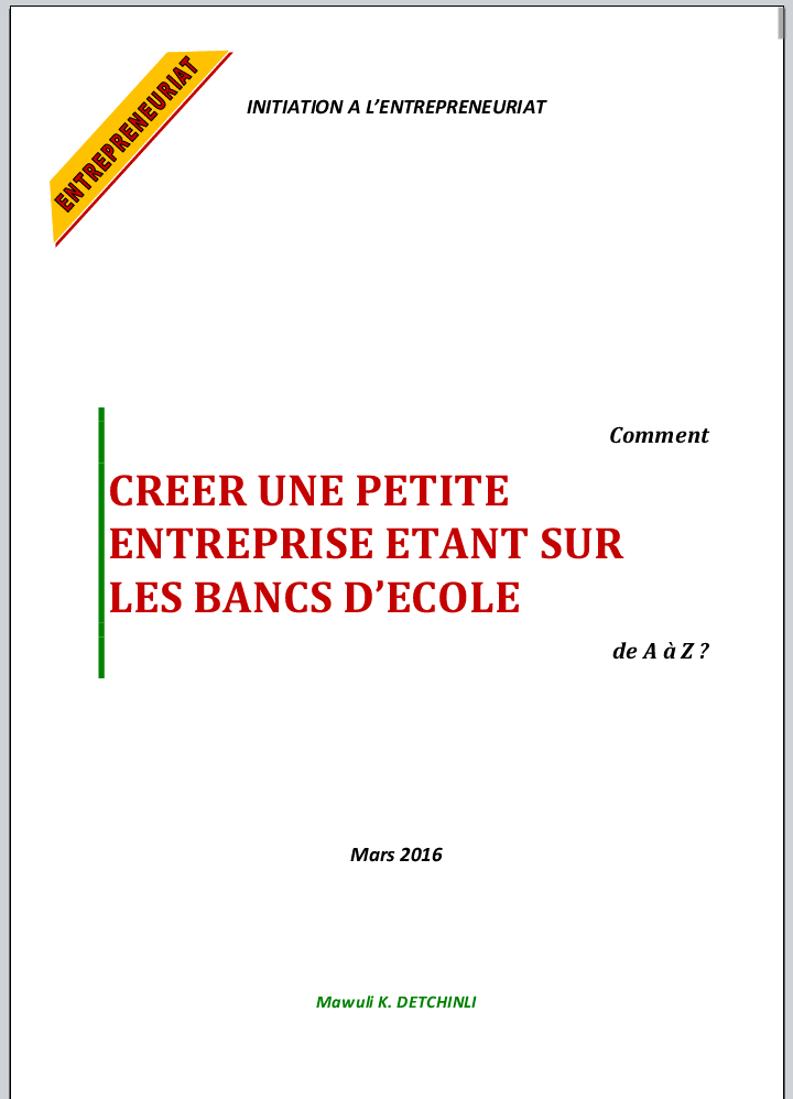 "COMMENT CREER UNE PETITE ENTREPRISE ETANT SUR LES BANCS DE L'ECOLE ?, DE A à Z" est un guide complet destiné à tous les étudiants (et/ou toute personne) désireux de se lancer dans l'entrepreneuriat tout en poursuivant leurs études.