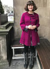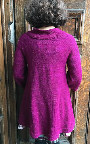 Evening in Edinburgh is the third pattern in the “Packing for Edinburgh” set and is a swing coat knit up in a statement color, which goes from lunch to museum, from pub to dinner. It is knit from the top down and you may do this back and forth (Suckers! Why aren’t you steeking?!) or in the round with a steek at the end that takes about 15 minutes. They are separate files.