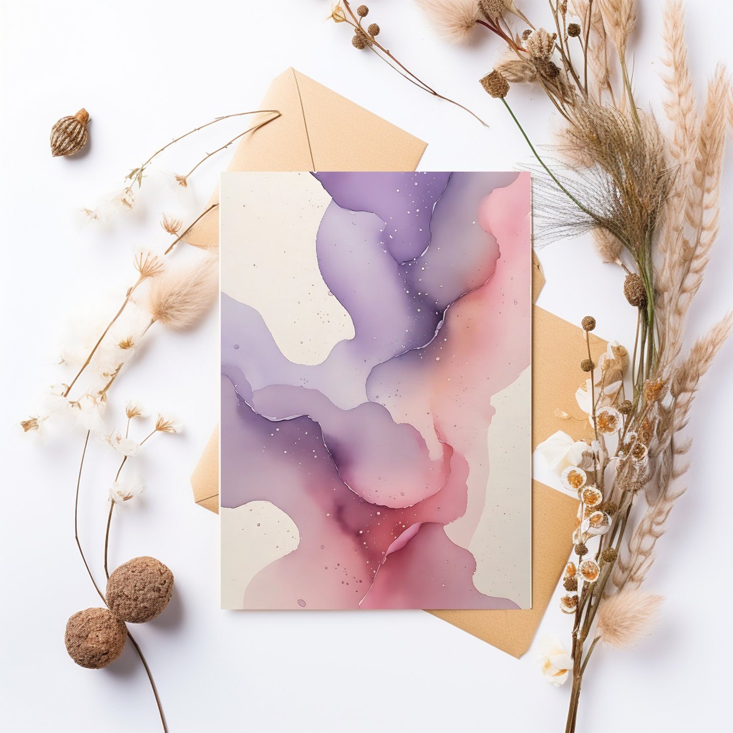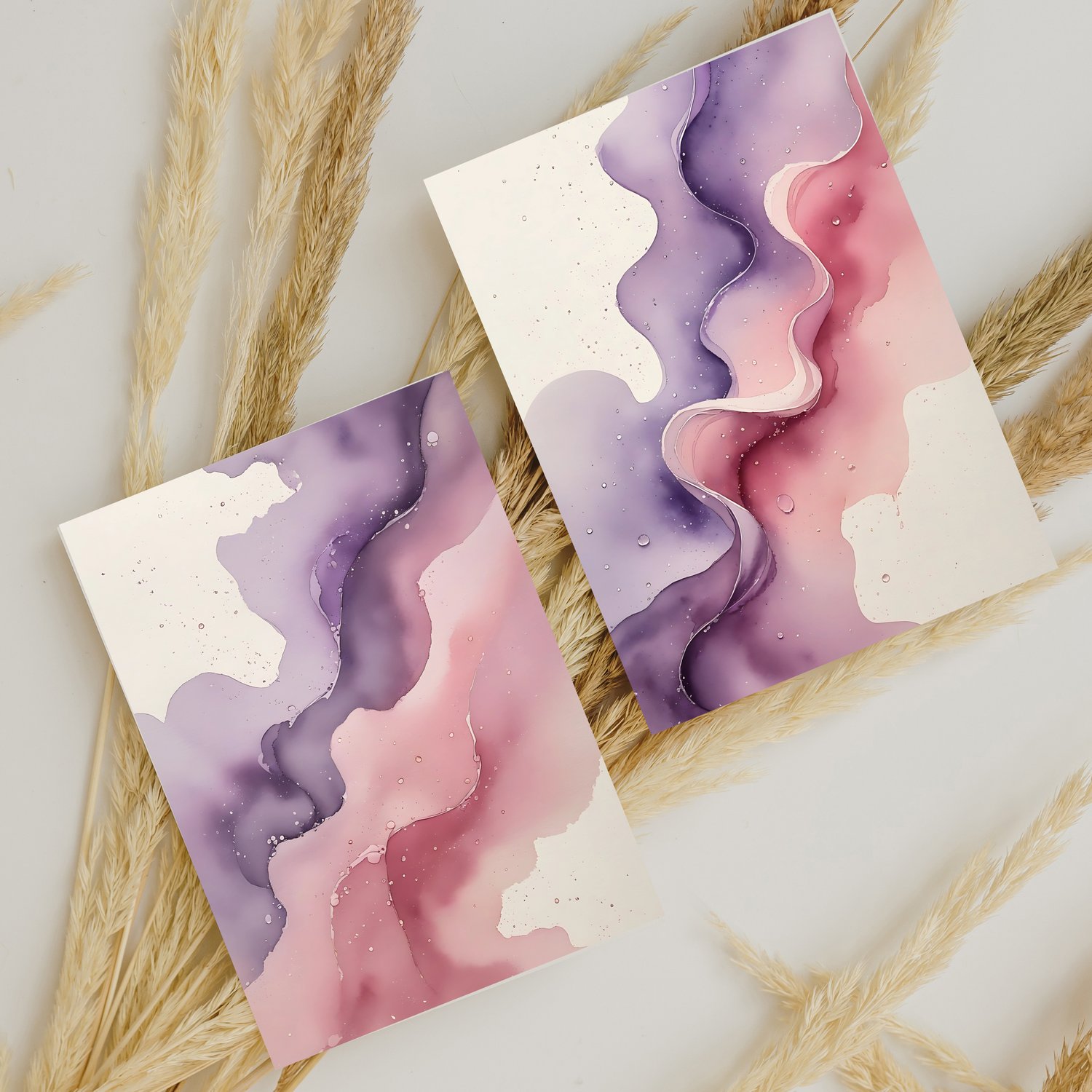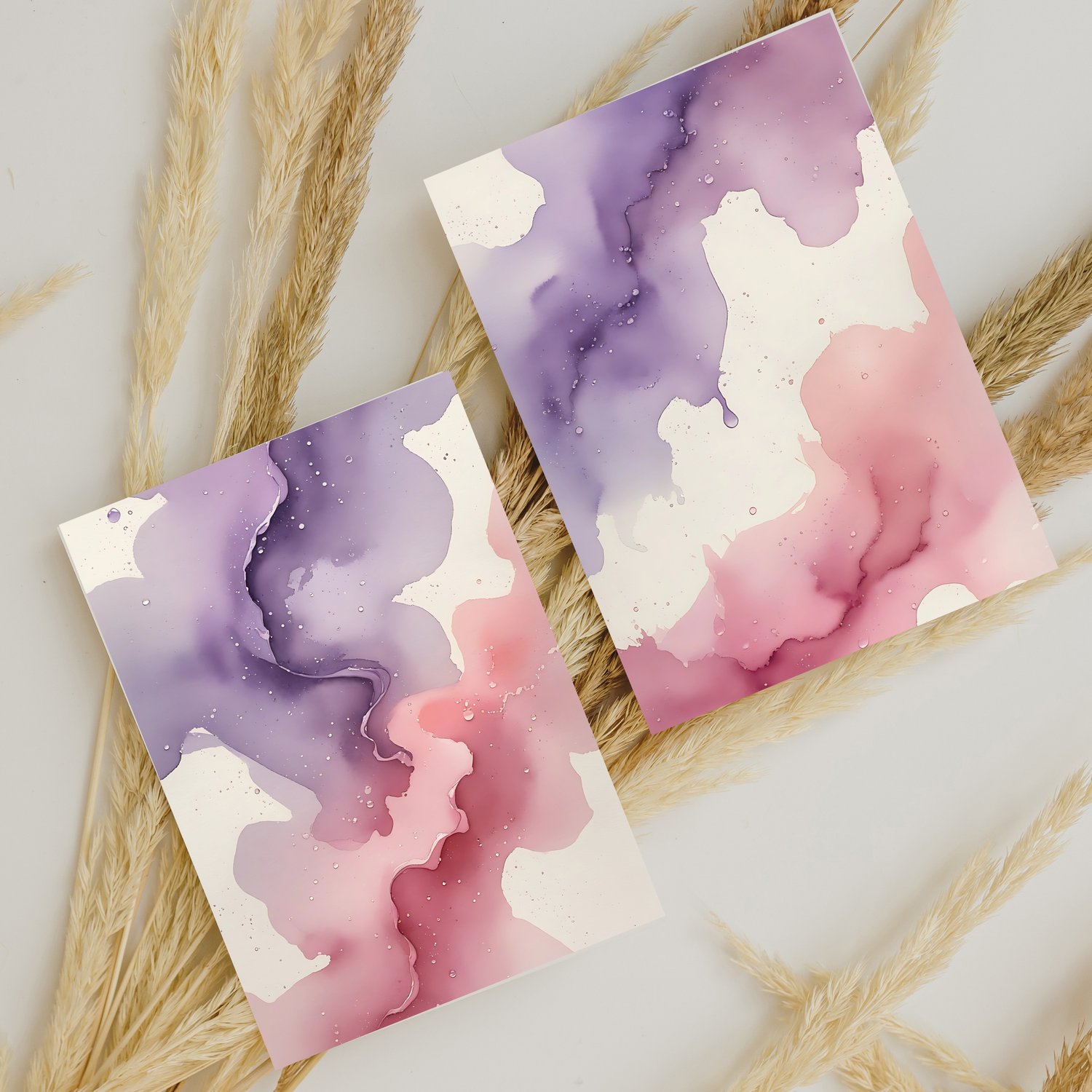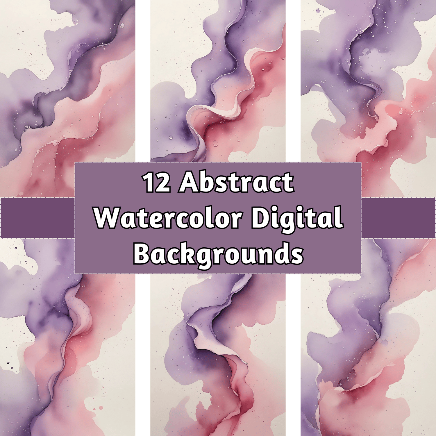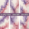 Infuse your designs with soft elegance using this set of 12 high-quality abstract watercolor backgrounds. Featuring a delicate blend of lilac, dusty rose, and blush pink, these dreamy gradient designs create a romantic and ethereal atmosphere. Gentle transparency and smooth watercolor textures enhance the fluidity, while subtle speckled details mimic tiny water droplets drying naturally on fine watercolor paper. The off-white background adds an organic, handmade touch, making these backgrounds perfect for feminine and artistic projects.