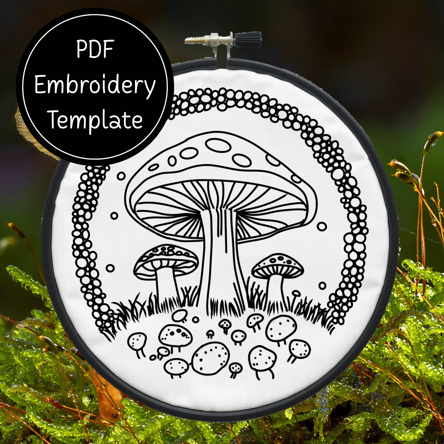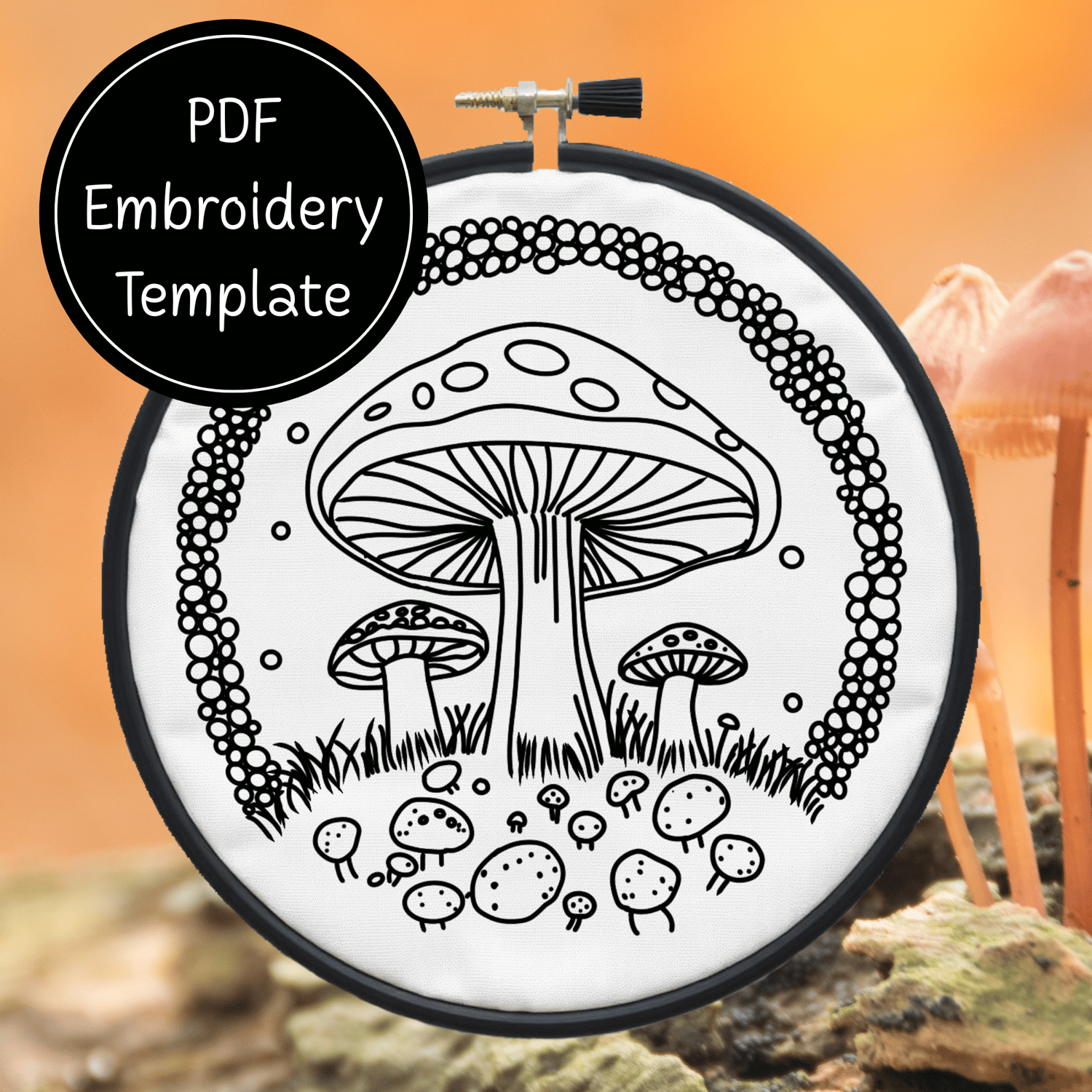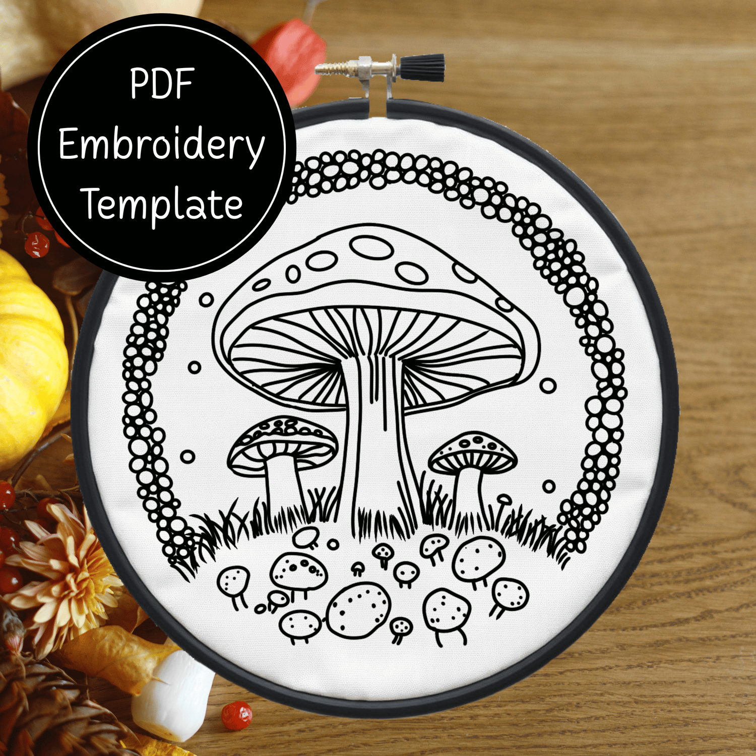 Mushroom Hand Embroidery Pattern DIY Nature Design For Hand Stitching - Instant Download