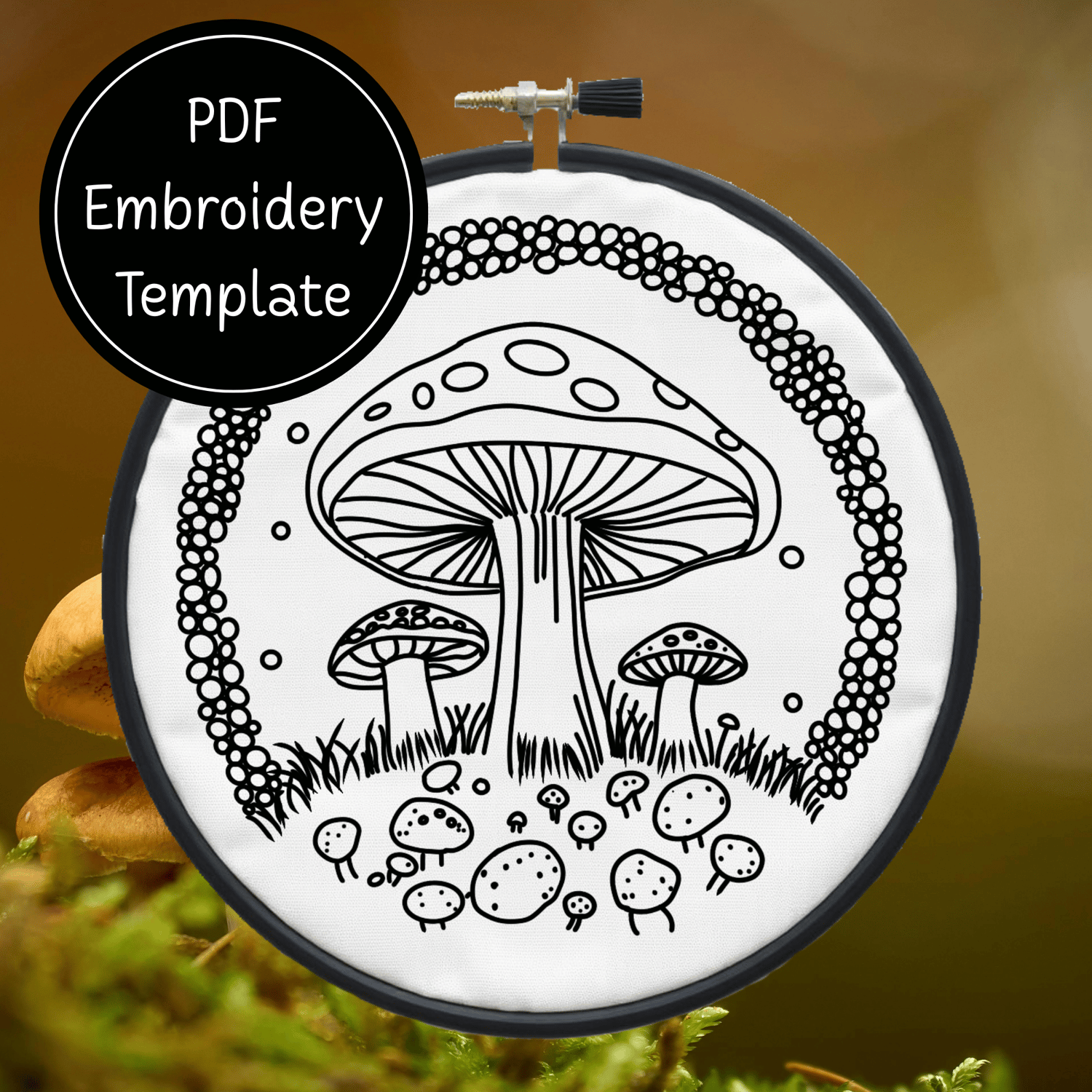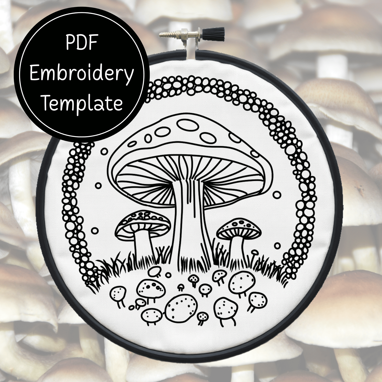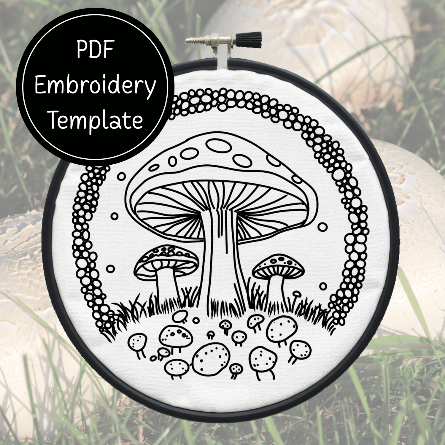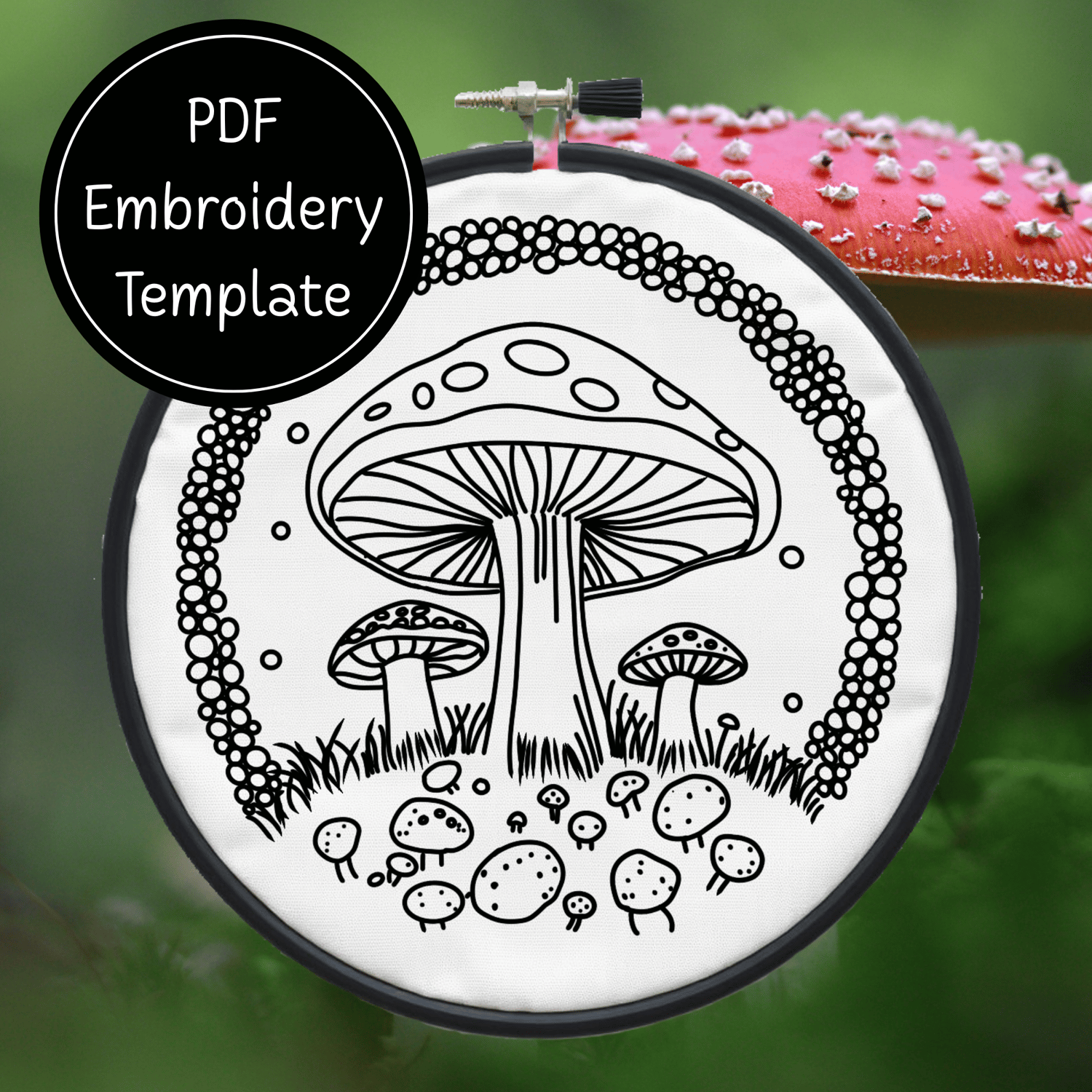 Mushroom Hand Embroidery Pattern DIY Nature Design For Hand Stitching - Instant Download