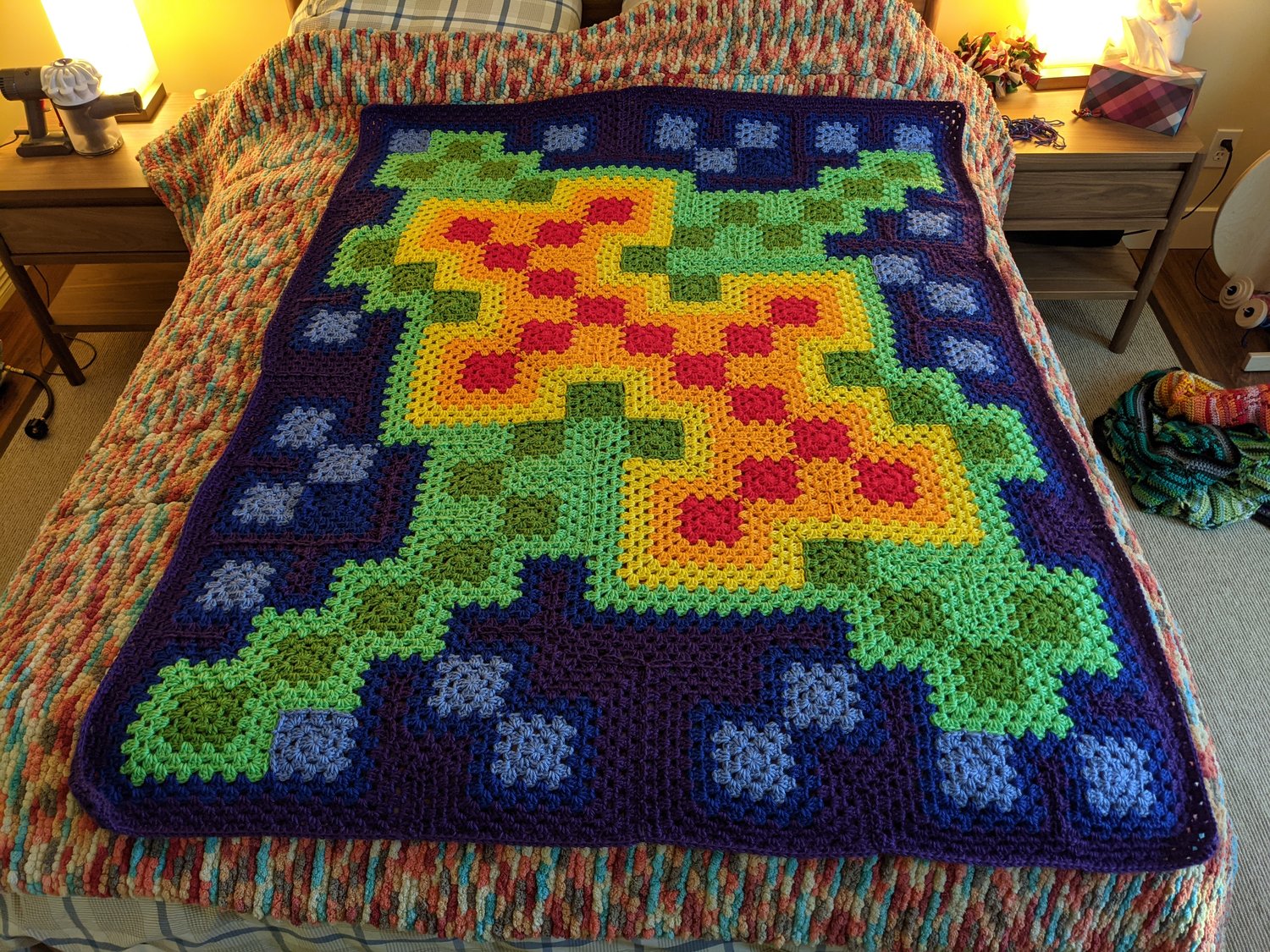 Perfect for the astronomer in your life! You can adjust the size of this nebula-inspired blanket easily by changing the type of yarn you use and/or changing the number of rounds you do. Your finished blanket will end up being 16x21 times bigger than your first square, which as the pattern is written, is a 3-round granny square. Sample measures 48” x 63”
