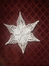 Instructions are given for both beaded and unbeaded snowflakes. A quick knit, this snowflake will soon adorn your packages, holiday tree, sweaters, scarves, and windows! Knit your own blizzard in any size yarn you desire!