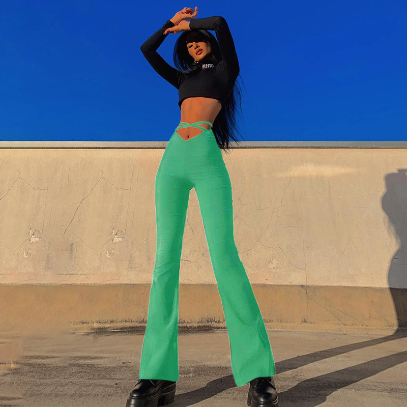 Spring New V-Shaped Waist Exposed Navel Cross Strap Flared Casual Pants Women