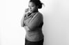 A large percentage of wool is recommended for this pattern, as it helps the garment keep it’s structure, though blends are definitely useable. Knitting in fingering weight / sport gives the garment a lot more drape.