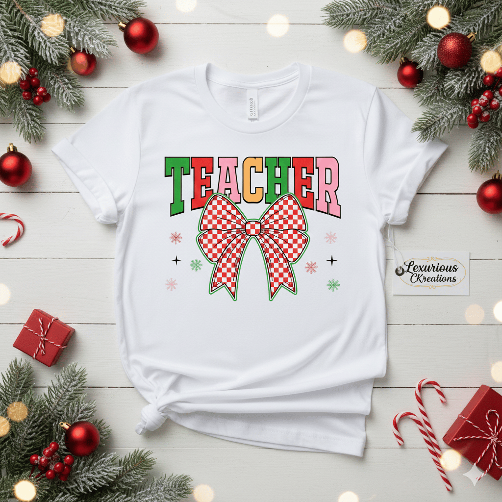 ✨ Teacher Holiday Bow Christmas Tee – Festive Classroom Shirt