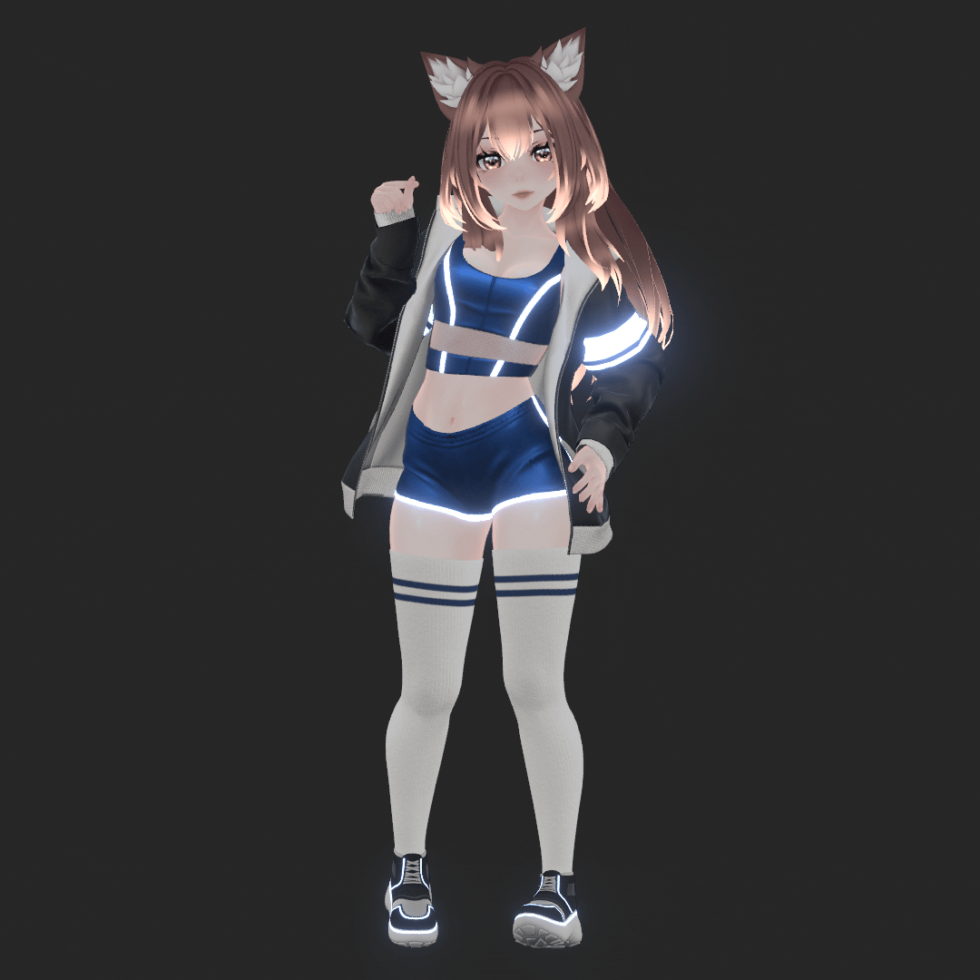 - 2 materials (outfit and shoes), AudioLink on emissions