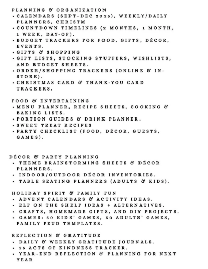 This aesthetic planner combines organization and joy — helping you manage gifts, meals, and budgets while enjoying interactive Christmas games, bingo cards, and festive quizzes. Whether you’re planning an unforgettable family Christmas or creating cozy memories at home, this planner has everything you need.
