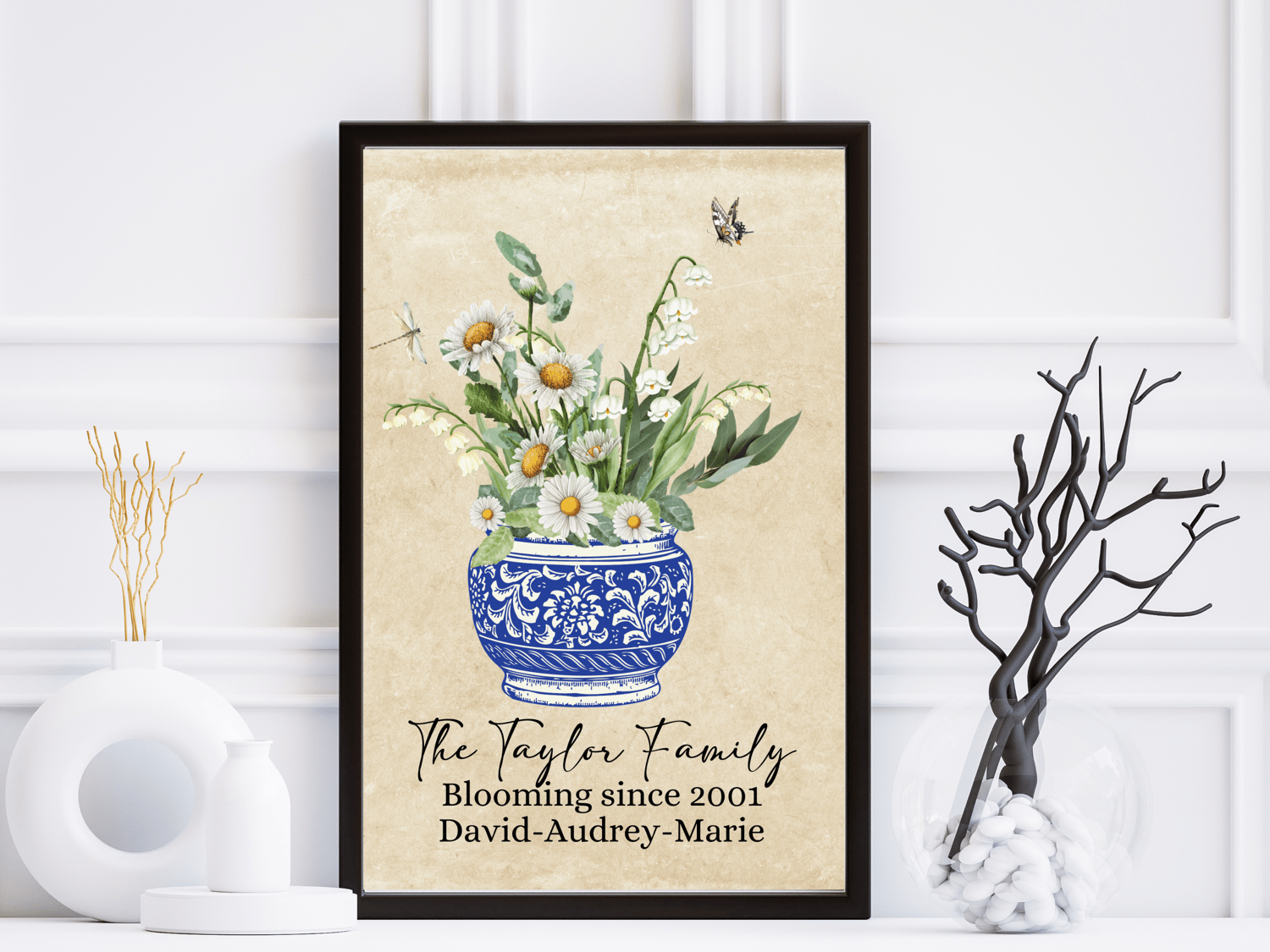 Capture the essence of your family's story with this personalised Birth Flower Family Bouquet – a perfect and unique gift for Mother's Day, Mother’s birthday, Grandma's birthday, Wedding Anniversary gift, a cherished piece of antique home art, or a floral family portrait.