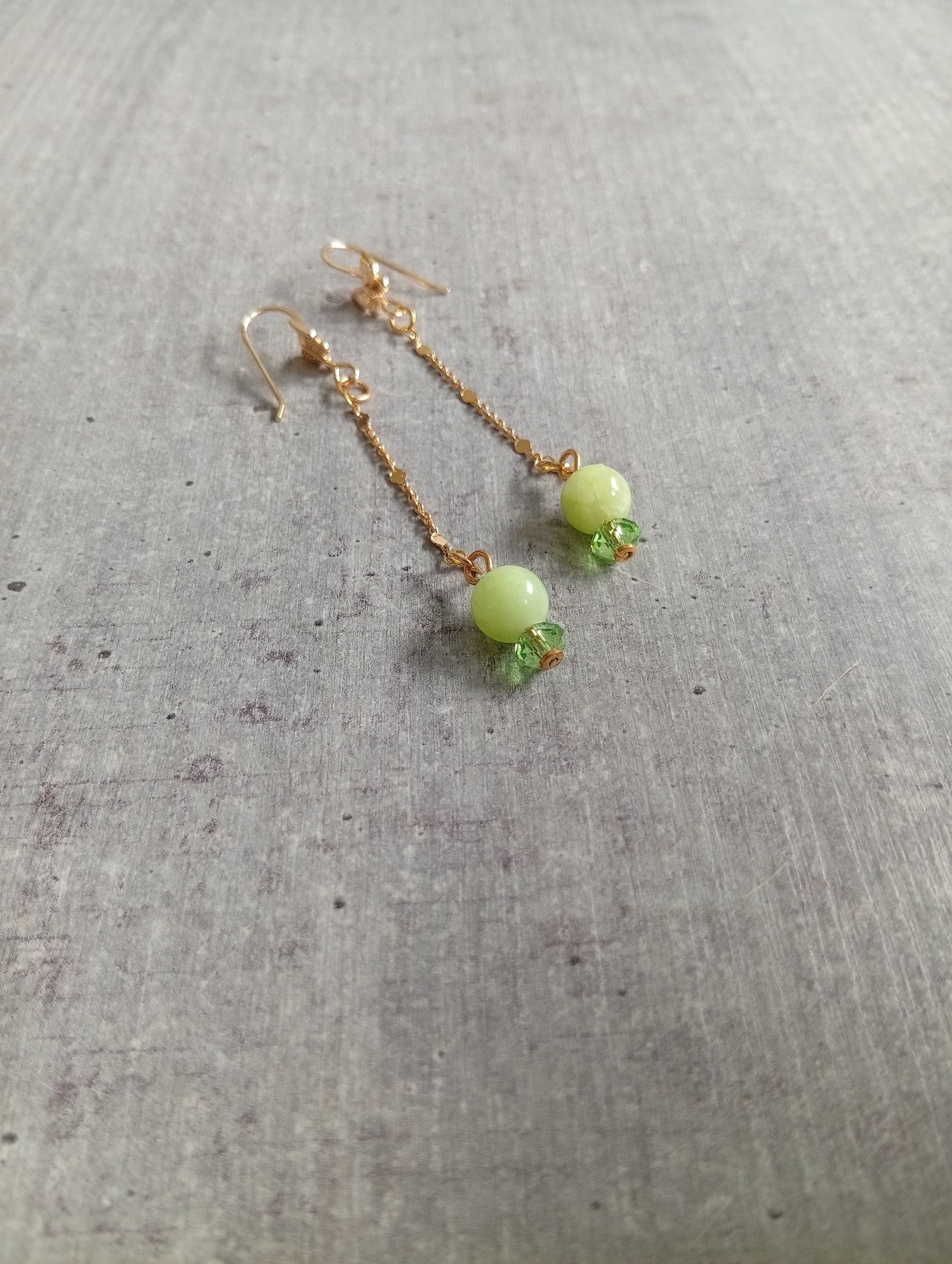 Avec sa perle de calcite verte associée à une touche cristalline grâce au Swarovski, cette paire pendante évoque la douceur du renouveau, l’équilibre du cœur et la sérénité de l’esprit.