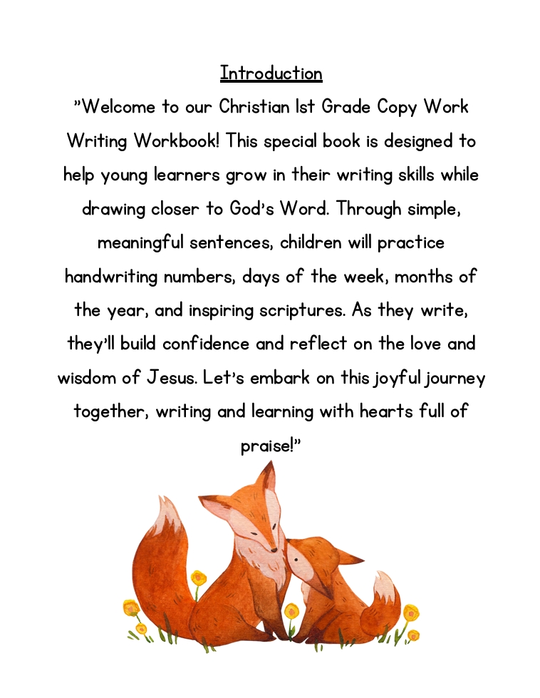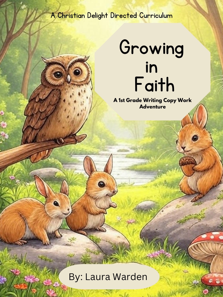 "Embark on a delightful journey of faith with A Christian Delight Directed Curriculum: Growing in Faith, a 1st grade writing copy work adventure! Designed to inspire young hearts, this engaging workbook weaves together the joy of learning numbers, days of the week, and months of the year with timeless Bible scriptures. Children will strengthen their handwriting skills through fun and meaningful copy work exercises while growing closer to God’s Word. Perfect for homeschoolers or Christian families, this adventure nurtures both mind and spirit in a way that’s simple, faithful, and full of delight!"