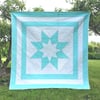 {Cover quilt made in Moda Bella Solid in Aqua and Porcelain}