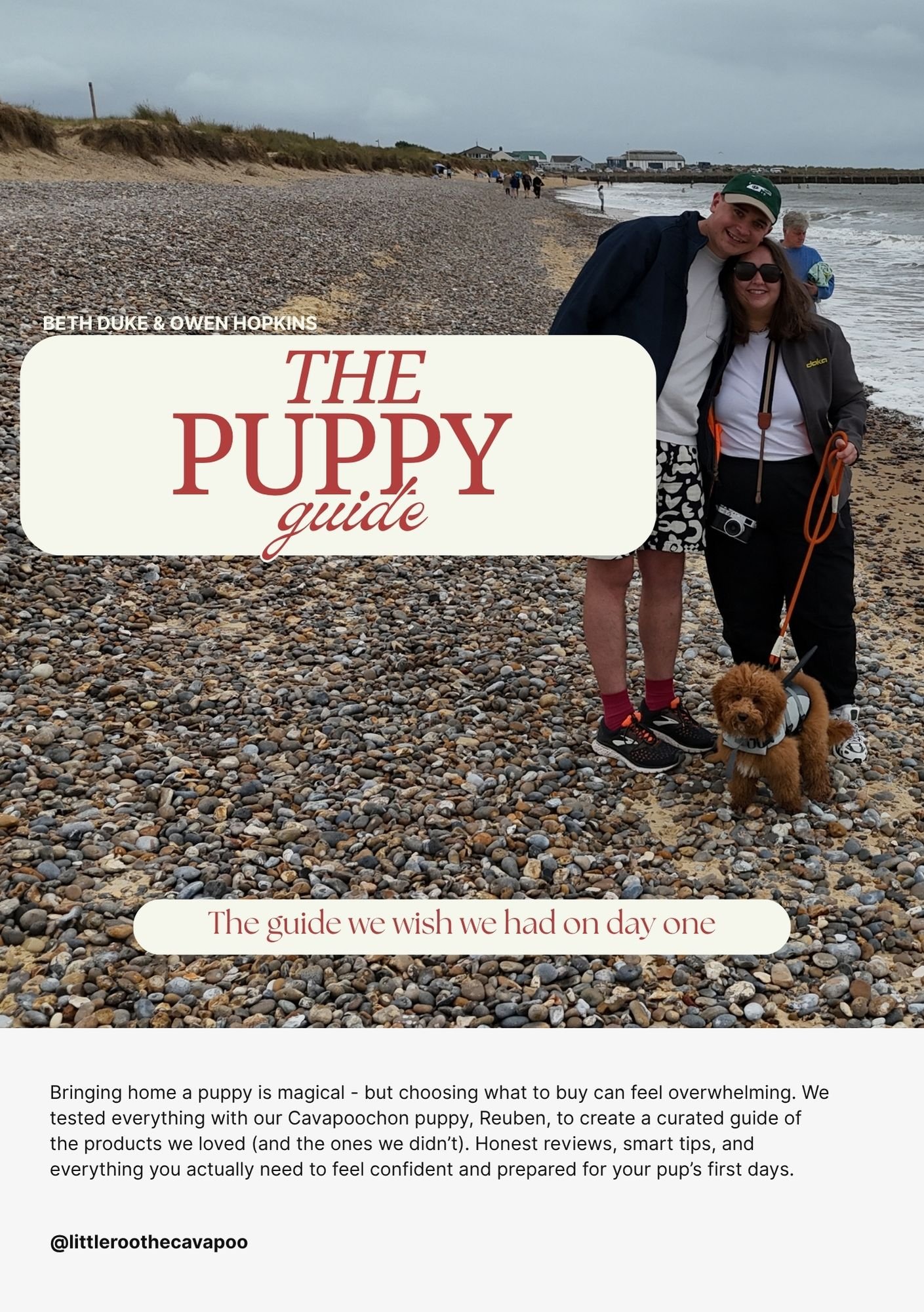 We’re Beth & Owen, proud puppy parents to Reuben the Cavapoochon - and the slightly chaotic humans behind this guide. When we brought Reuben home, we were hit with the realisation that raising a puppy comes with a lot of decisions. Beds, toys, treats, leads, harnesses, chews, crates, grooming tools… it felt like every day we were discovering something new we apparently “needed.” We spent hours researching, reading reviews, watching videos, and, honestly, wasting money on things that turned out to be totally unnecessary.