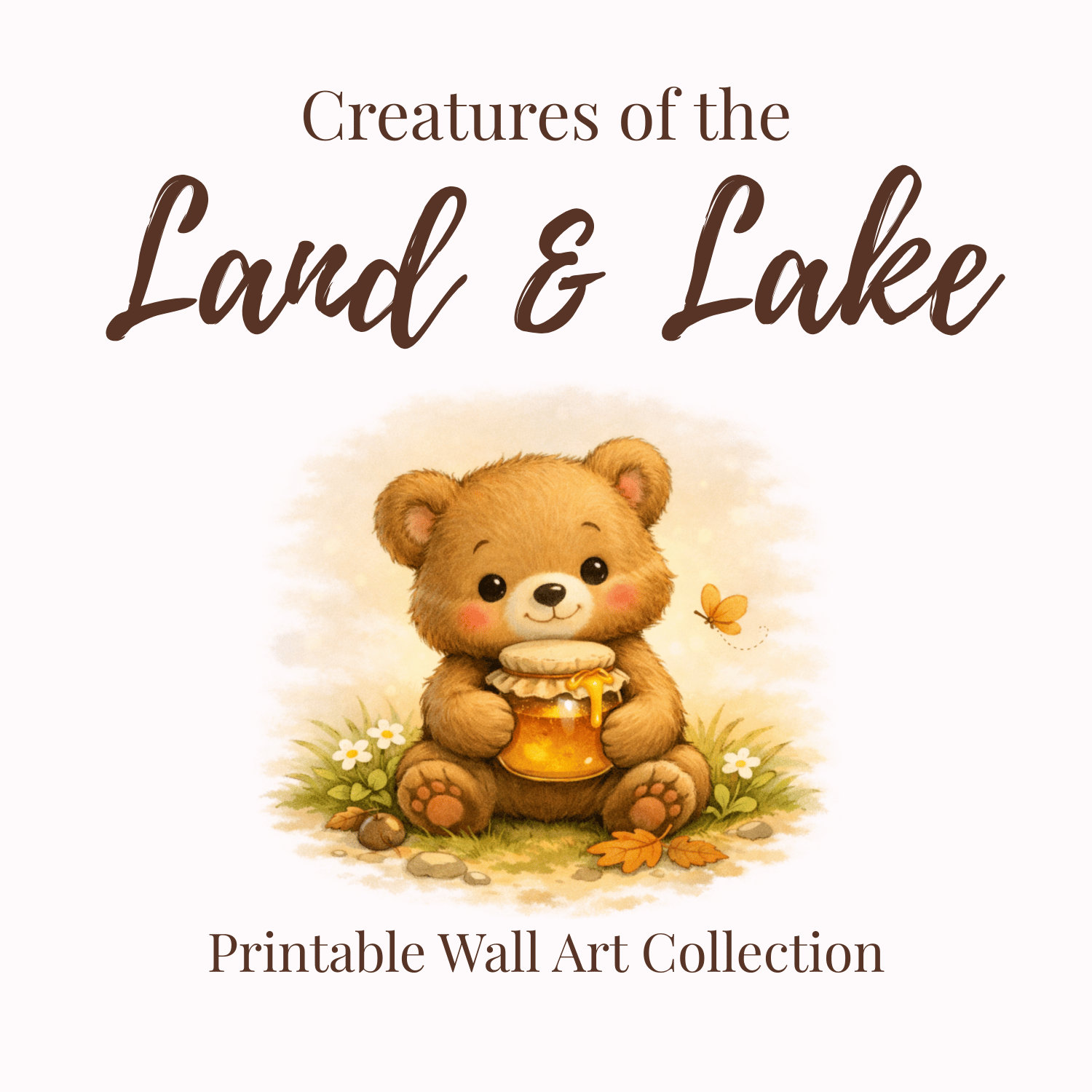 Bring calm, modern magic into your nursery, kids’ room, classroom, or family space with this painterly printable wall art featuring a gentle bear from the Creatures of the Land & Lake collection. Designed with softness and intention, this artwork adds warmth, comfort, and quiet wonder to any environment.