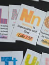 The set includes alphabet cards with corresponding bible verses that are sure to capture your child's attention. From A is for "All have sinned and fall short of the glory of God" to Z is for "Zion hears and rejoices", each card features an engaging illustration that will help reinforce the meaning behind each verse.