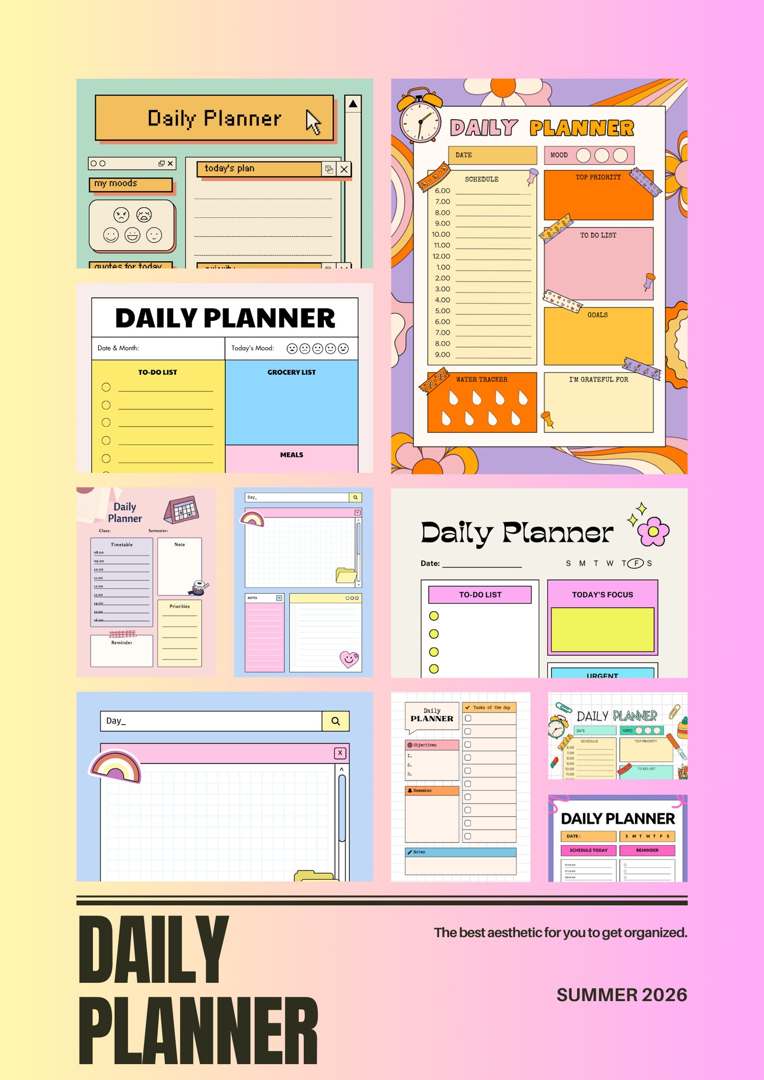 Daily Planner is a practical tool designed to help, manage daily tasks in one place. It helps improve productivity, time management, and decision-making by providing structured layouts for planning, tracking progress, and ideas.