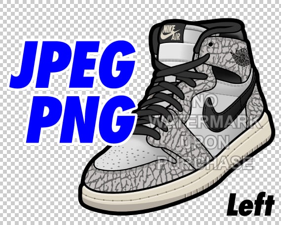 Air Jordan 1 White Cement JPEG PNG digital sneaker art