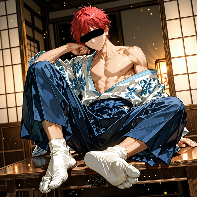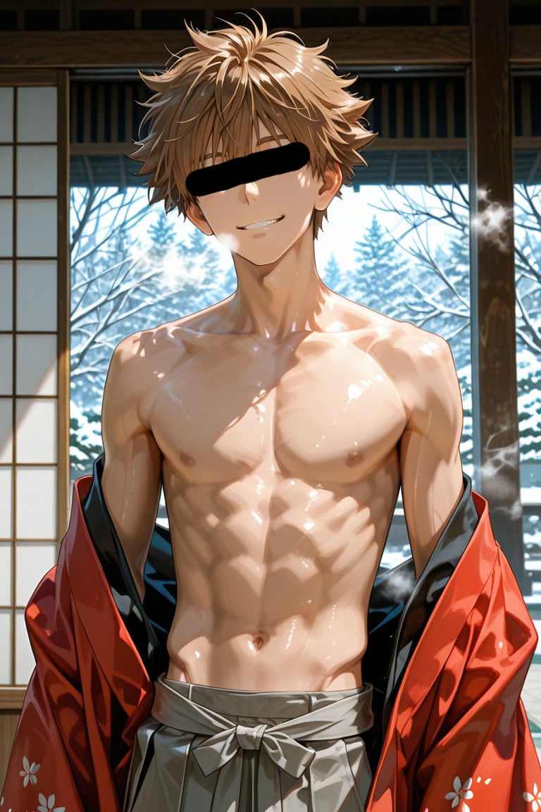 日本の正月をテーマに、着物を着用している男性を、キャラクターごとにお任せ作成しました。男らしいキャラクターの魅力を思い切って表現しました。