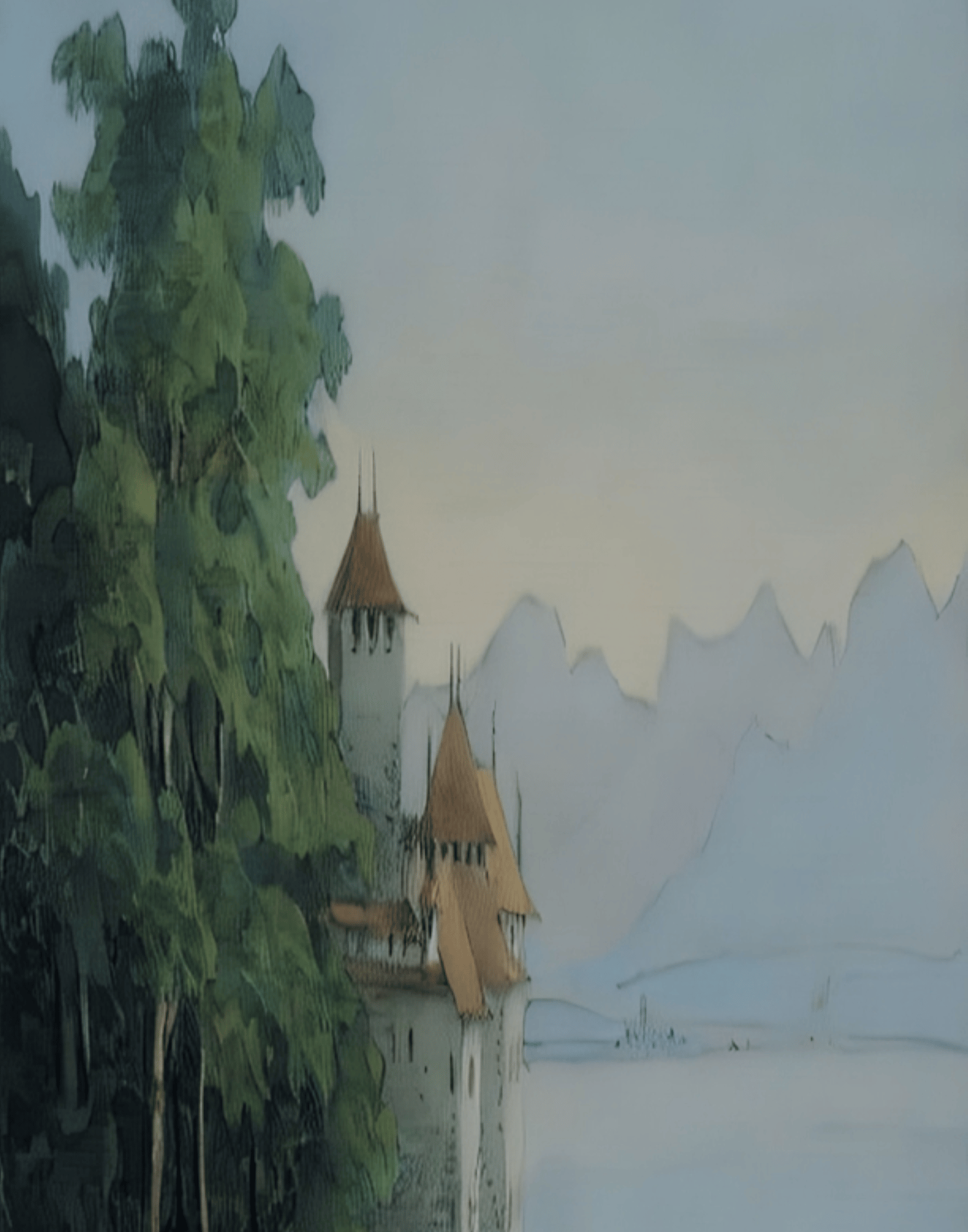 City Wall Art, Vintage Mountain Lake Landscape, Nostalgic Nature, Cool Nature, Rustic natural Landscape, Painting.