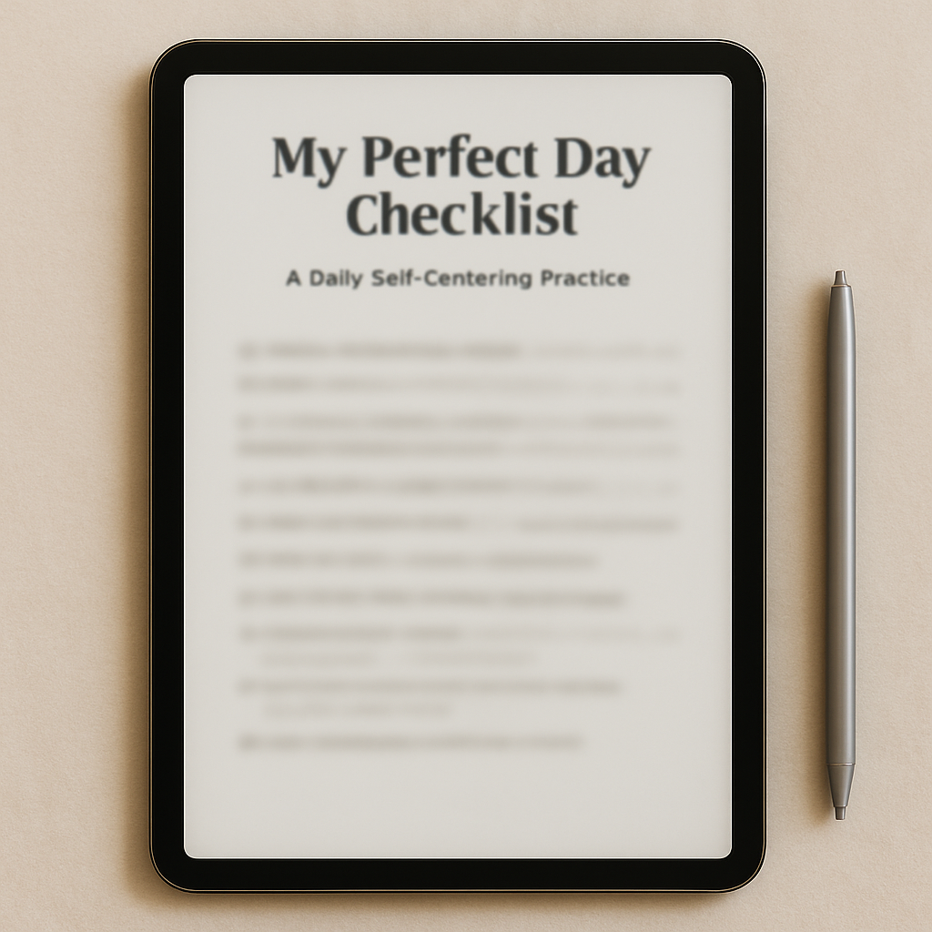 This Perfect Day Checklist is a simple daily tool that helps you show up for yourself with consistency, softness, and intention. It’s a self-centering guide that keeps your mind, body, and spirit supported through small acts of care you can actually keep up with. Every item is quick, doable, and rooted in real healing practices for Black American women who are tired of survival mode and ready to pour back into themselves.