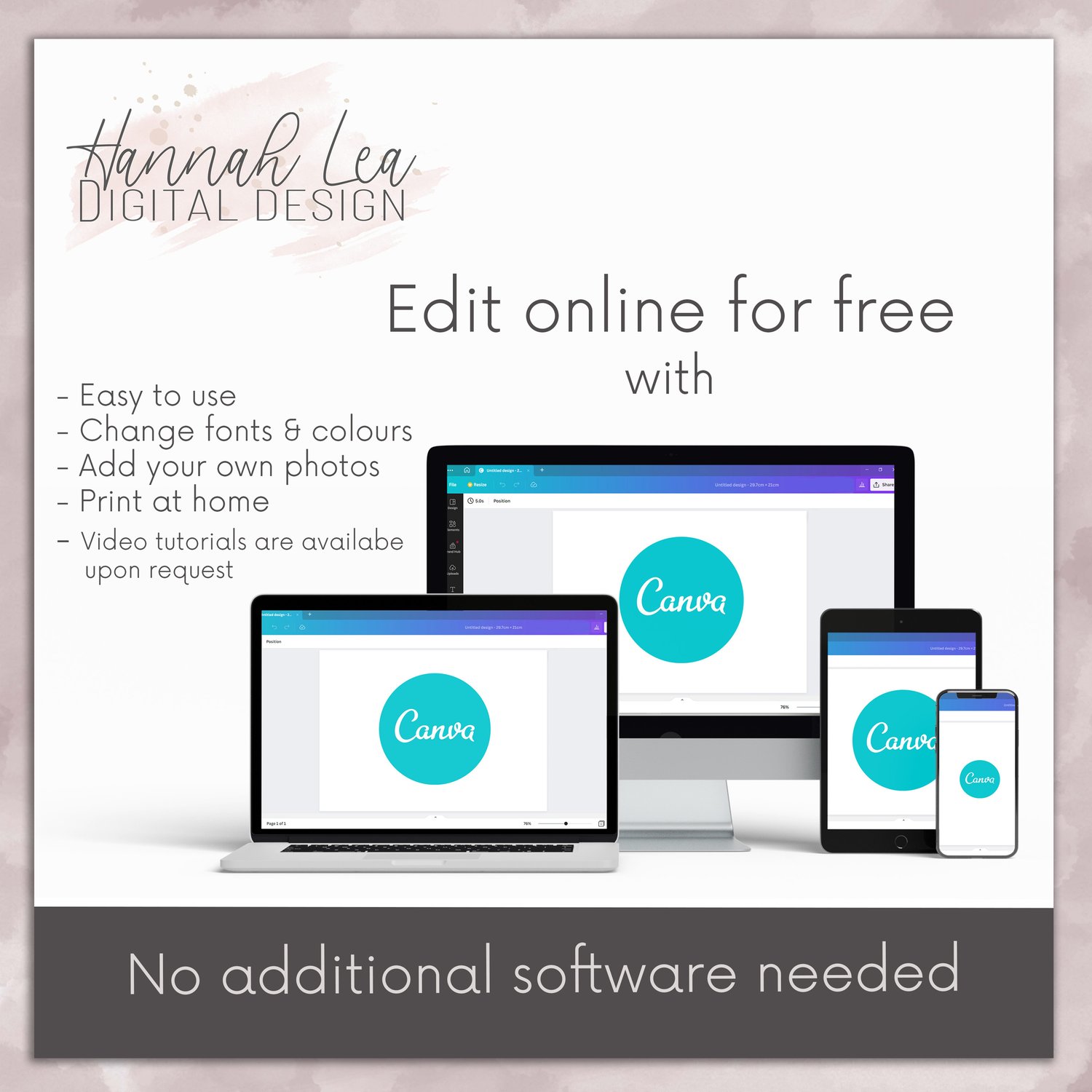 After purchase you will receive a PDF containing a link - this will open in your browser, to allow editing with Canva,
