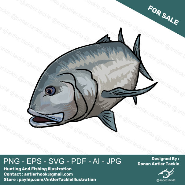 Giant Trevally Fish Illustration Logo Exclusive License Designed By Donan Antler Tackle